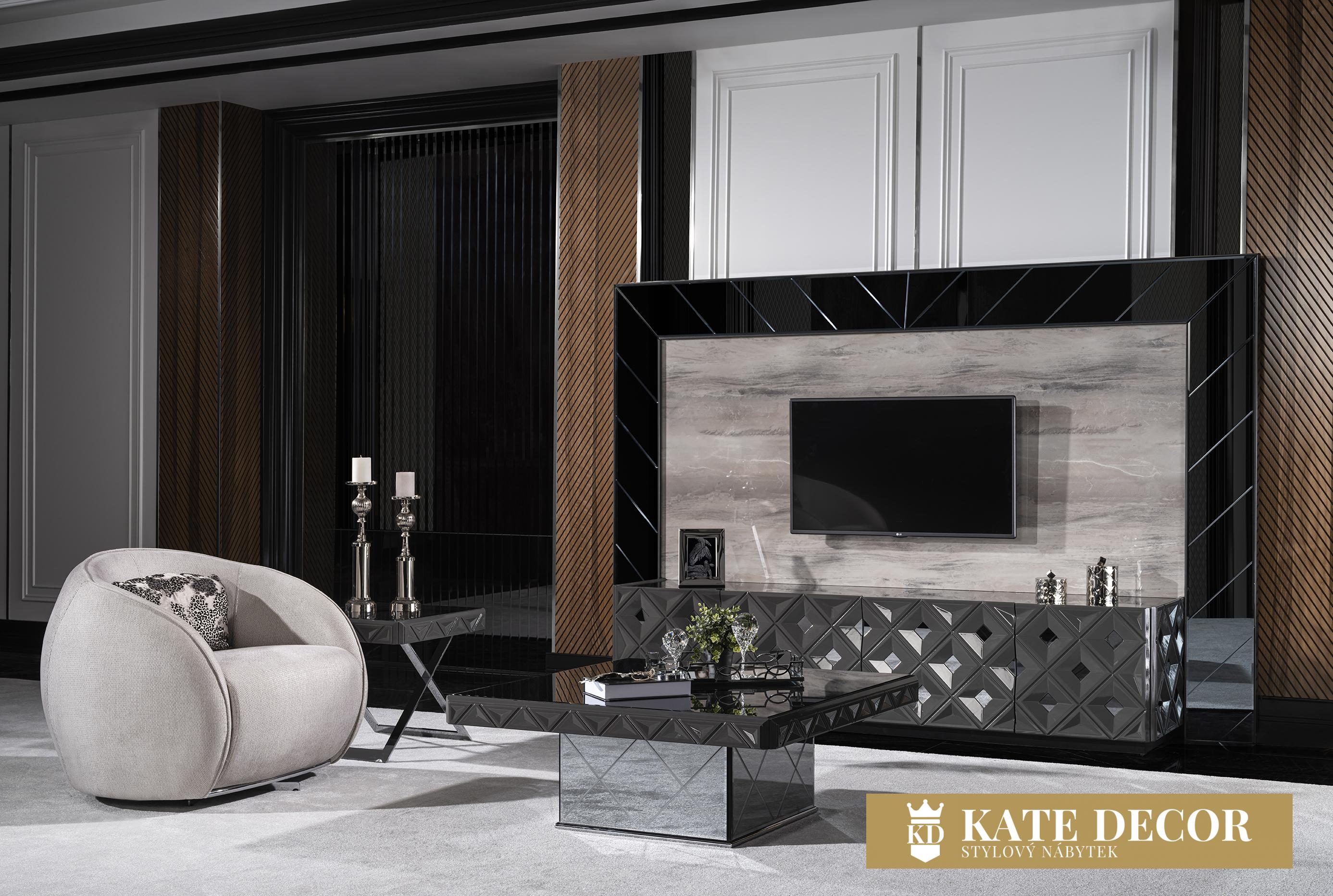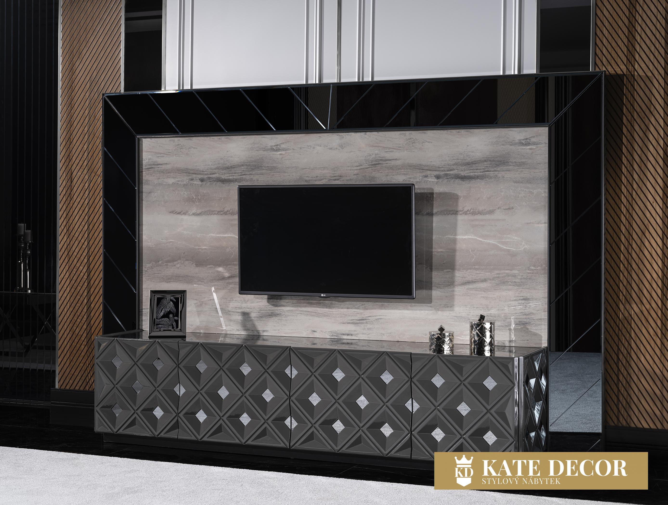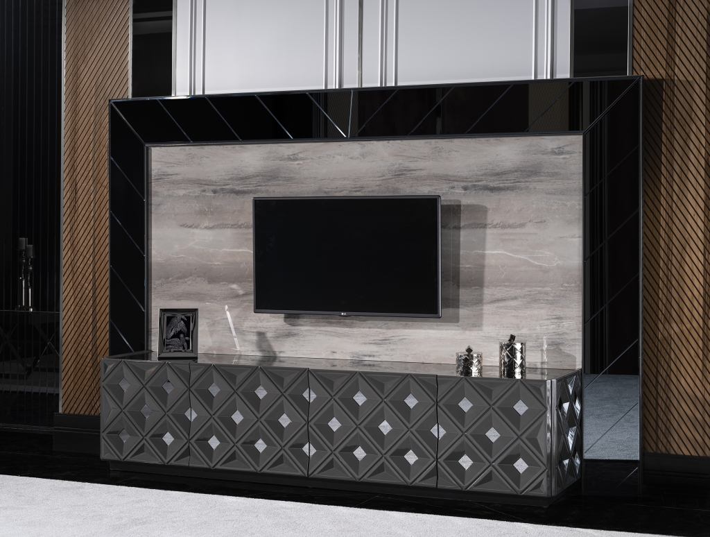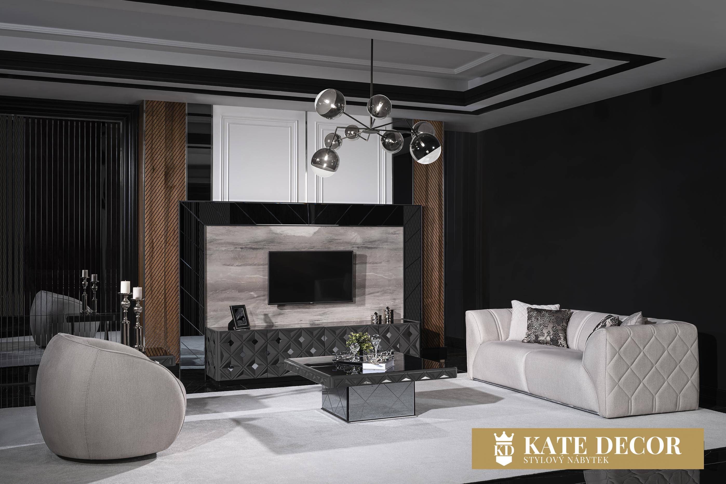 Obývací stěna VIONA se vyznačuje výrazným designem a je připravena stát se nepostradatelnou součástí Vaší domácnosti. Úžasná harmonie ecru a černé barvy vytváří okouzlující atmosféru a umocňuje jejich uklidňující účinek. Kromě útulné atmosféry získá Váš pokoj spolu se zrcadlovými aplikacemi, antracitovými detaily a jedinečným designem stylový a estetický vzhled. Sada je vyrobena z materiálů MDF a zaručuje dlouhodobé používání bez deformací.