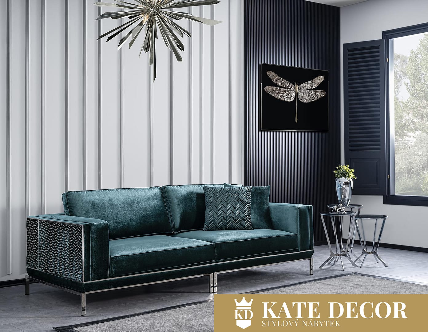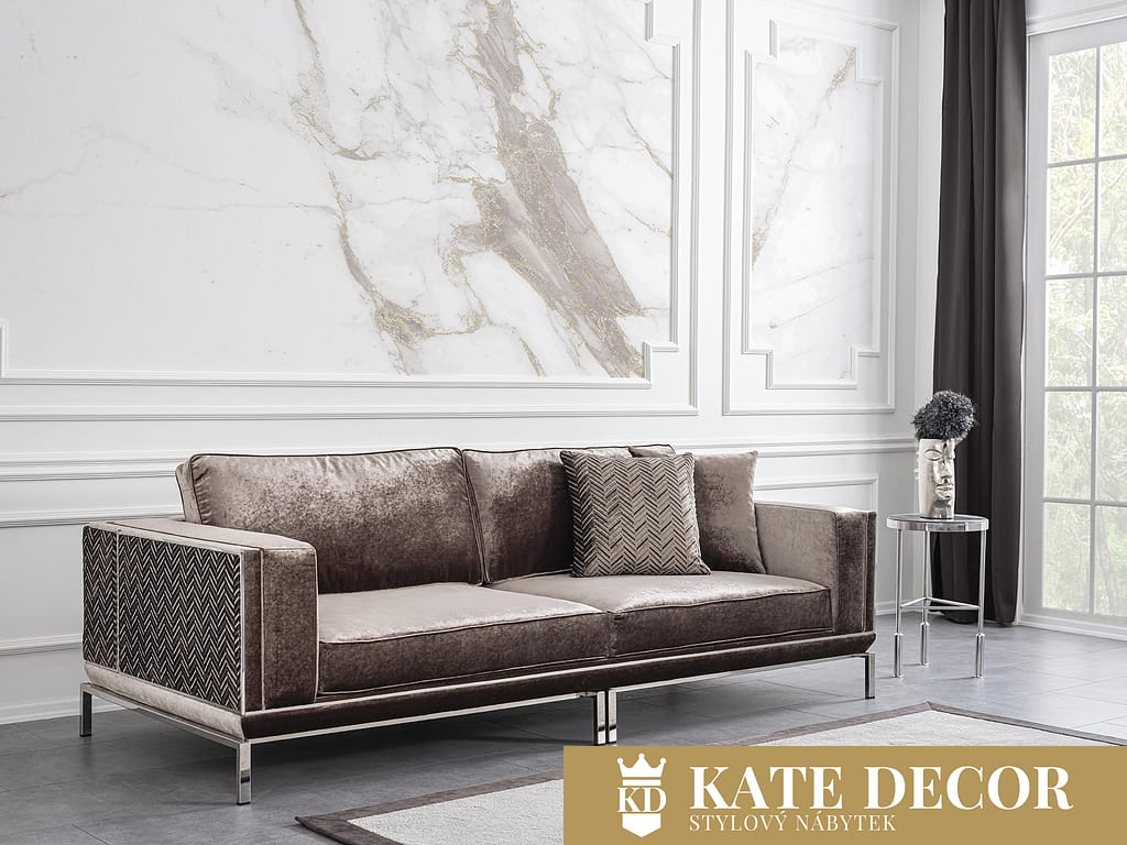 třímístná pohovka: šířka 240 cm, výška 75 cm, hloubka 105 cm.