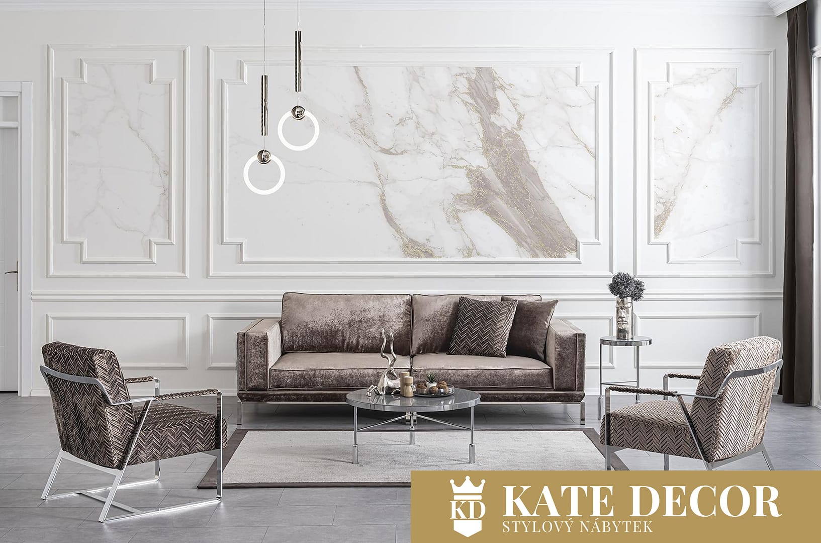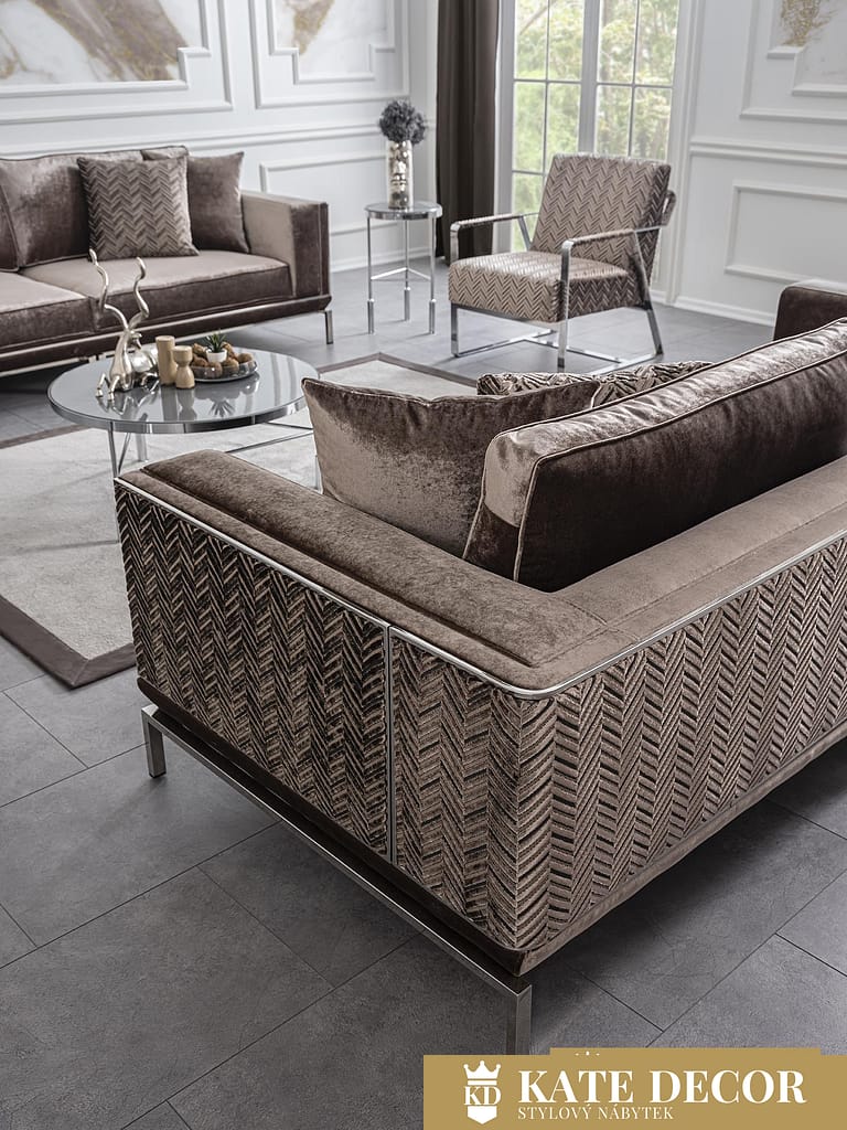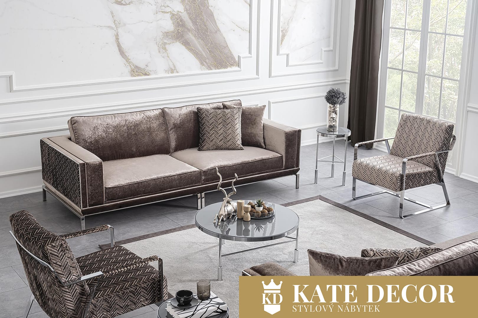 dvoumístná pohovka: šířka 210 cm, výška 75 cm, hloubka 105 cm.