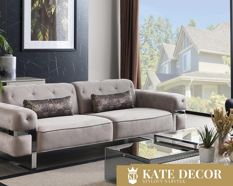 třímístná pohovka: šířka 240 cm, výška 75 cm, hloubka 100 cm.