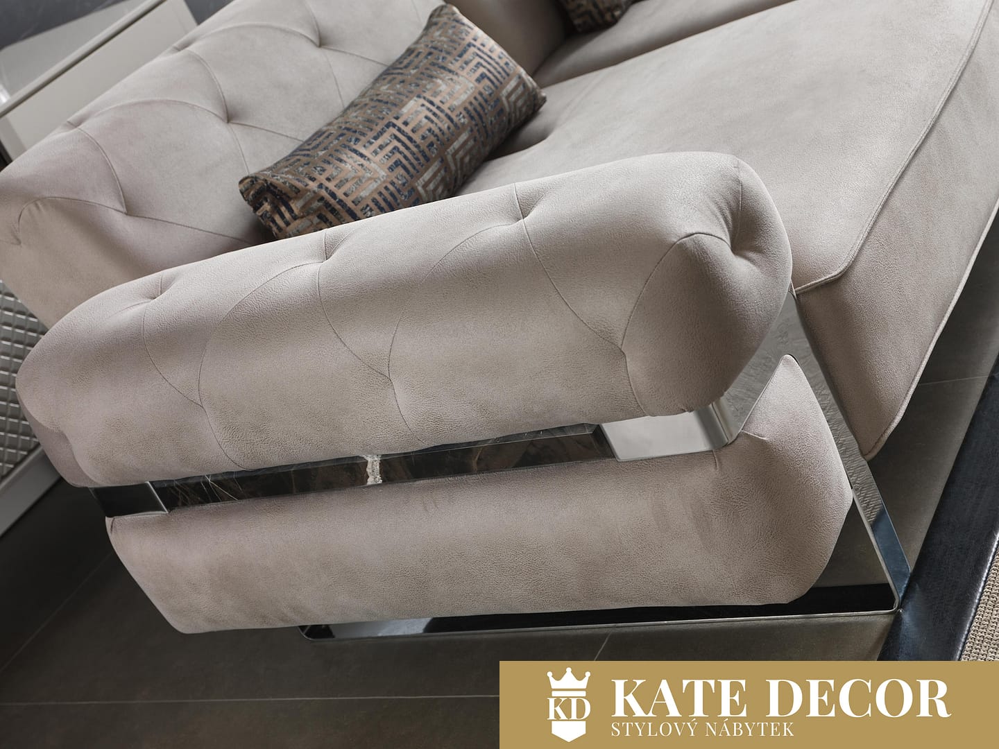 Pohovka PRADA vyniká čistým a stylovým designem a nabízí maximální pohodlí a komfort. Jedná se o design, který má velmi funkční strukturu z hlediska použití a který se může přizpůsobit Vašemu domovu díky pohodlným křeslům, jež nemají daleko k naturalismu. Obývací pokoj je místem, kde můžete v každodenním chaosu trávit čas o samotě i se svými blízkými, proto by Vaše volba měla být na straně kombinace, která v sobě spojuje eleganci, pohodlí a relaxaci. Pro klidný a kvalitní život.