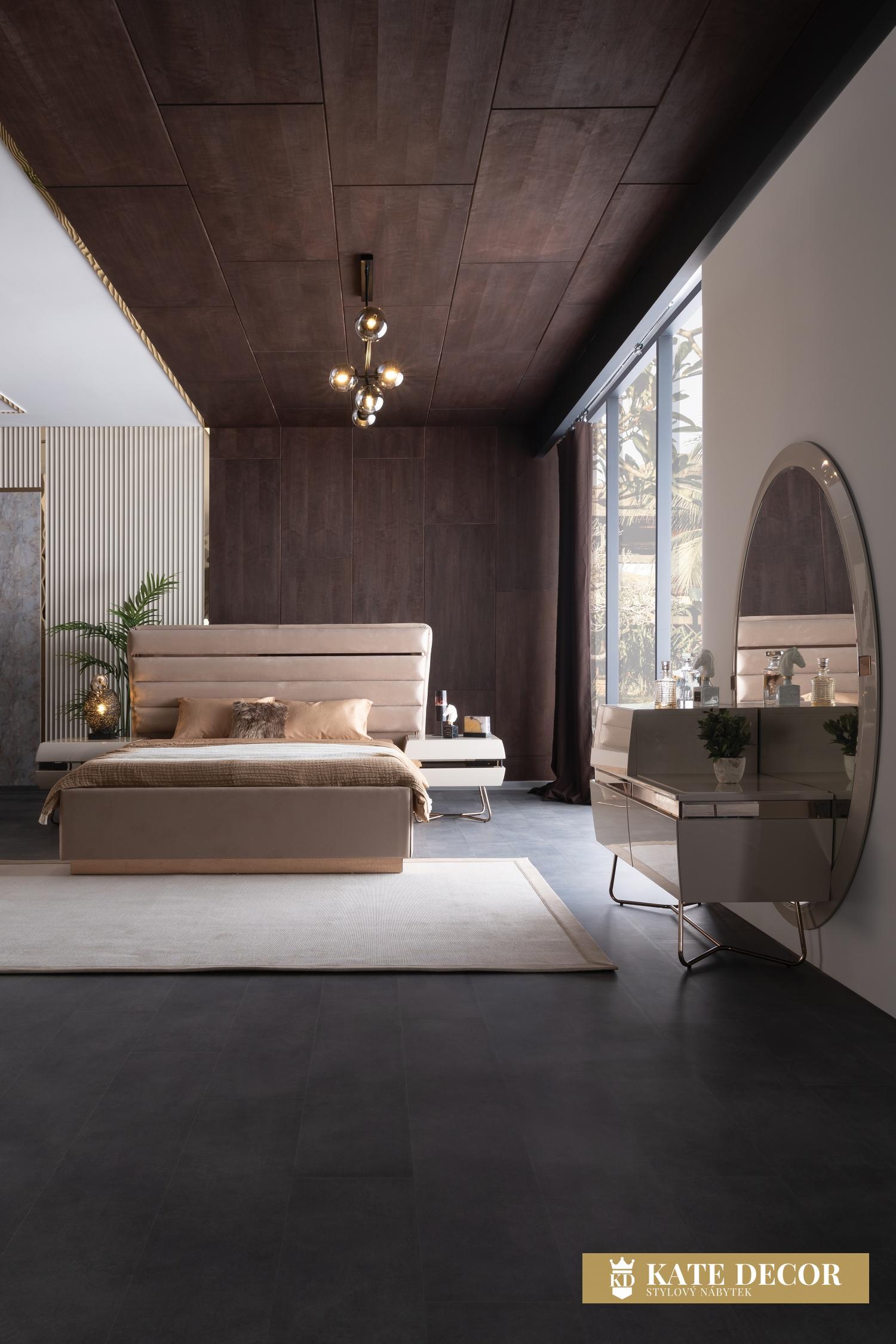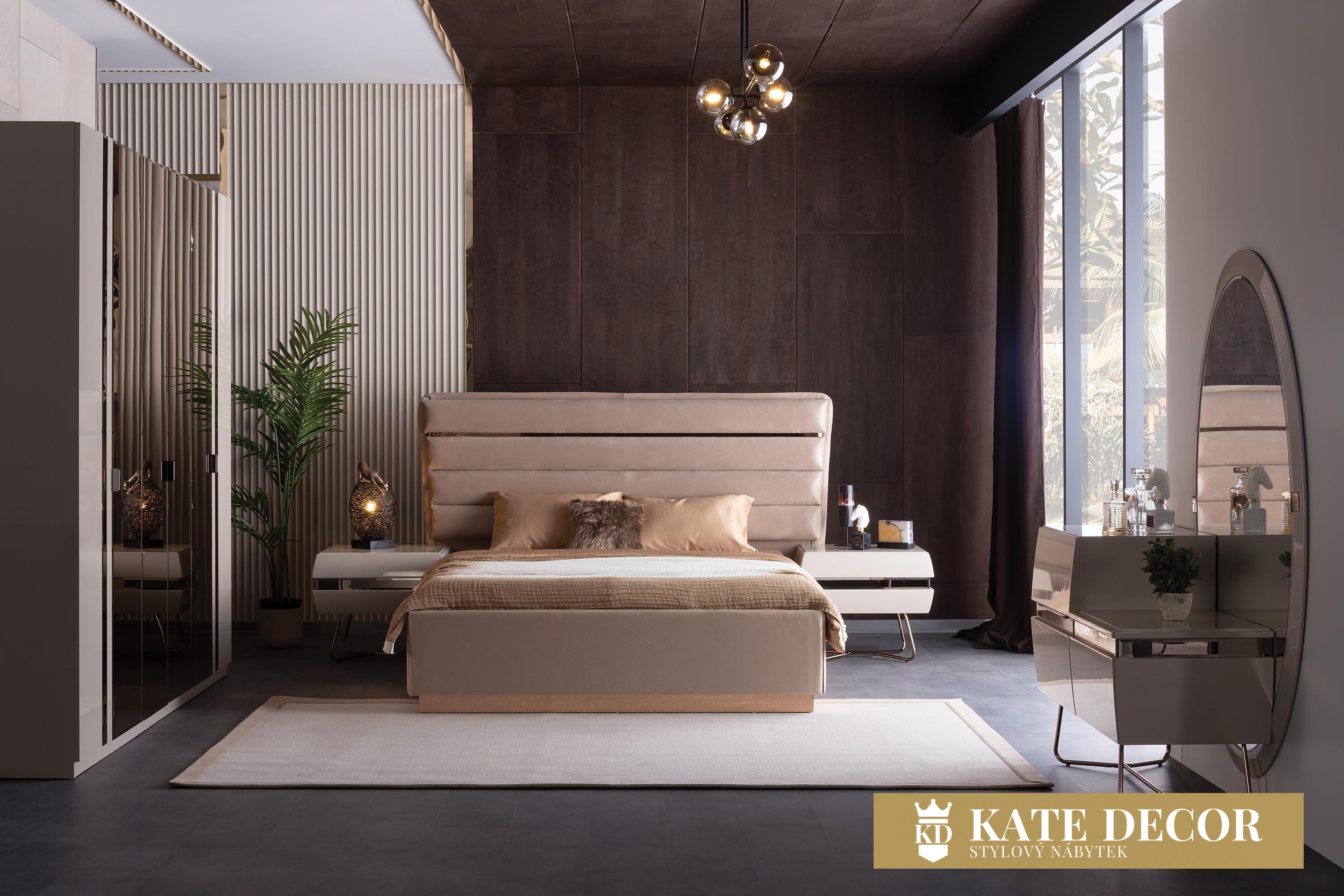 LORENZO nabízí dokonalý vizuální dojem díky poutavému designu a stylovým detailům. Díky kvalitním houbám a látkám na čelo postele Vám pomůže pocítit ducha pohodlí a vychutnat si klid. Dřevěná barva, kovové detaily, zrcadlové dekory a lakované odstíny vnesou do Vašeho pokoje jinou atmosféru. Preference vysoce kvalitních mechanismů a materiálů, stejně jako dřeva na výrobu, zajišťují jeho trvanlivost. Designový model s dekory, použitými materiály a interpretovanými elegantními detaily dodá Vašemu pokoji lákavý vzhled a styl.