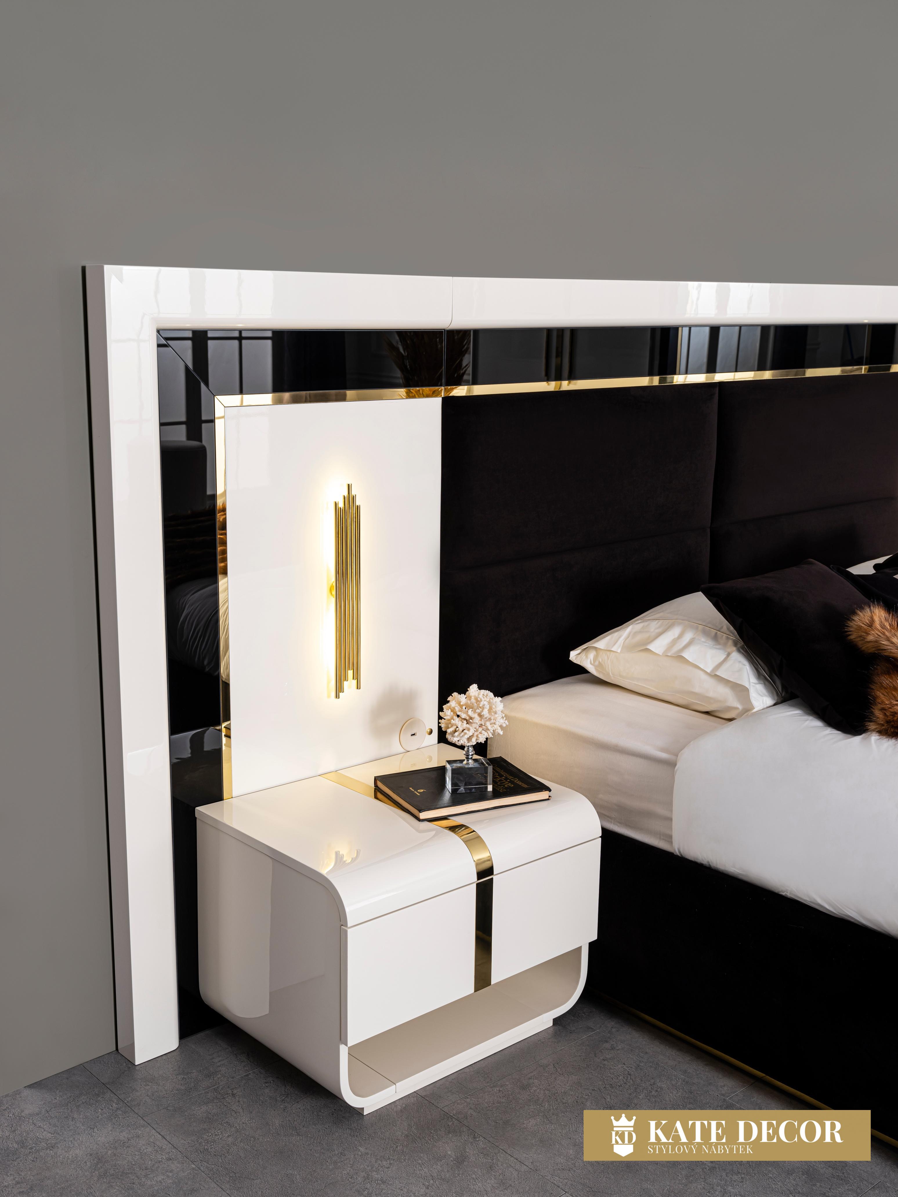 Díky svému jedinečnému designu a půvabu nabízí postel NEFI možnost dosáhnout vysněného pohodlí a stylu. Speciálně navržené detaily, neuvěřitelná škála barev a použité speciální materiály a látky obohacují vzhled výrobku a dodávají Vašemu pokoji jedinečný design. Mechanismy zajišťují bezpečné a snadné používání podstavce postele. Postel NEFI Vám přináší nadčasovou eleganci a luxus spojený s technologií moderní doby. Díky svému jedinečnému designu a půvabu nabízí možnost dosáhnout vysněného pohodlí a stylu. Zabudované zlaté LED osvětlení v teplém spektru, společně s vysokým leskem nadčasové kombinace barev, vytváří útulnost, klid a relaxaci. Jedinečný design, příjemný materiál a vysoká kvalita s řemeslnou precizností zajišťují její odolnost postele se snadnou údržbou. Správné a stabilní spojení čalouněného čela se základnou zaručuje spokojené užívání po mnoho let. Velkoryse pojatý úložný prostor otvírá trvanlivý a lehce ovladatelný zvedací mechanismus.
