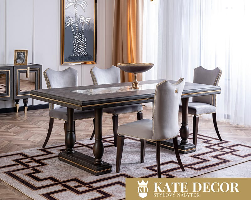 Příborník z nábytkové sady MADRID má jedinečný design kombinující klasiku s modernitou. Toto jedinečné spojení vytvoří ve Vašem pokoji harmonii detailů a staví tak stolek i každý další kus z celé kolekce do popředí. Luxusní spojení šedé barvy s dekorem dřeva a zlatými aplikacemi i originálními úchytky zdůrazňují exklusivitu a trvanlivou kvalitu materiálů. Kombinace i dotek materiálů potěší Vaše smysly. Povrch je příjemný na dotyk a odolný proti poškrábání. Příborník vyniká svým stylem, ale i uklidňujícím účinkem, připomíná nádherný a nezkrotný španělský venkov, kde odpočinek je téměř povinností.