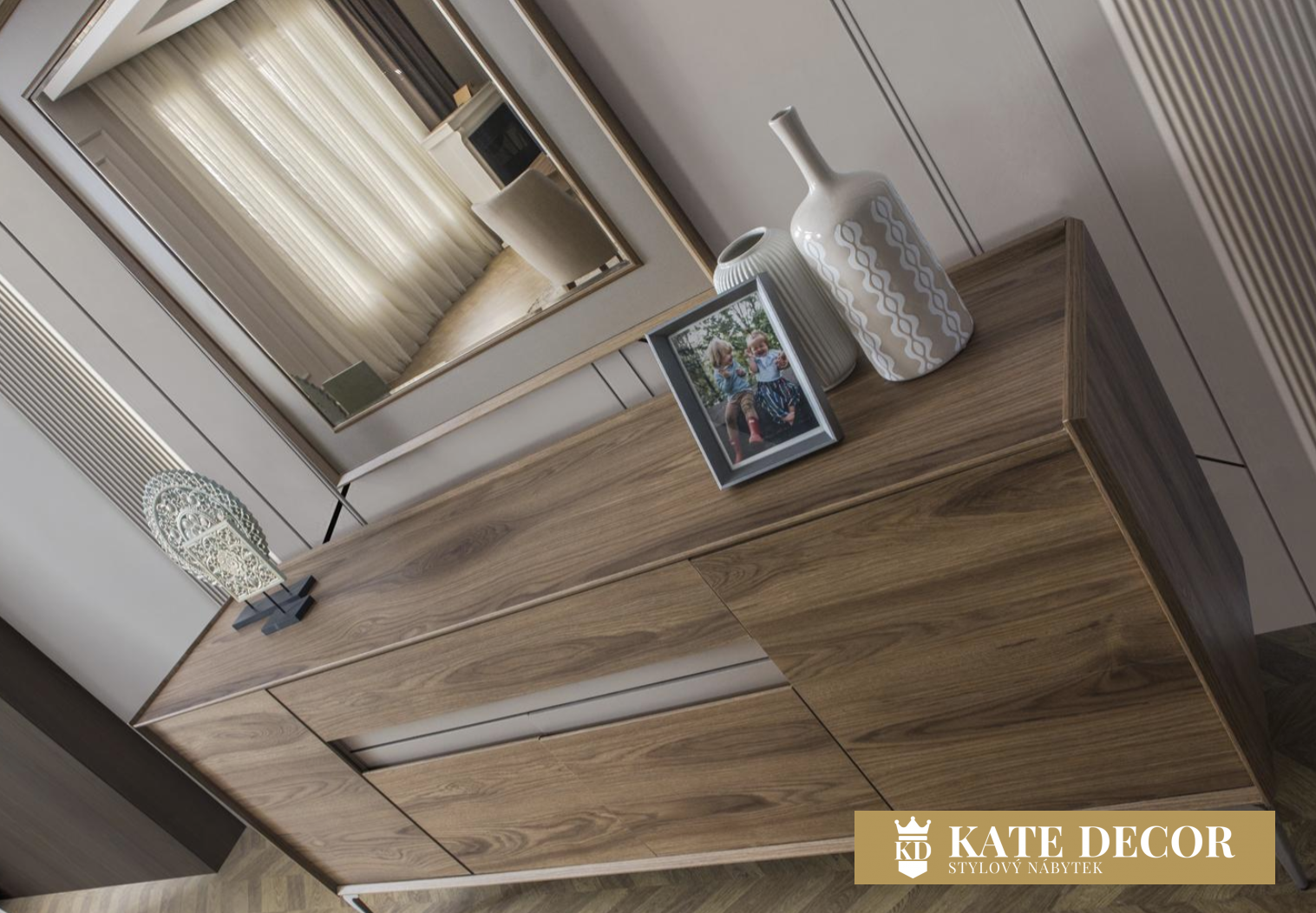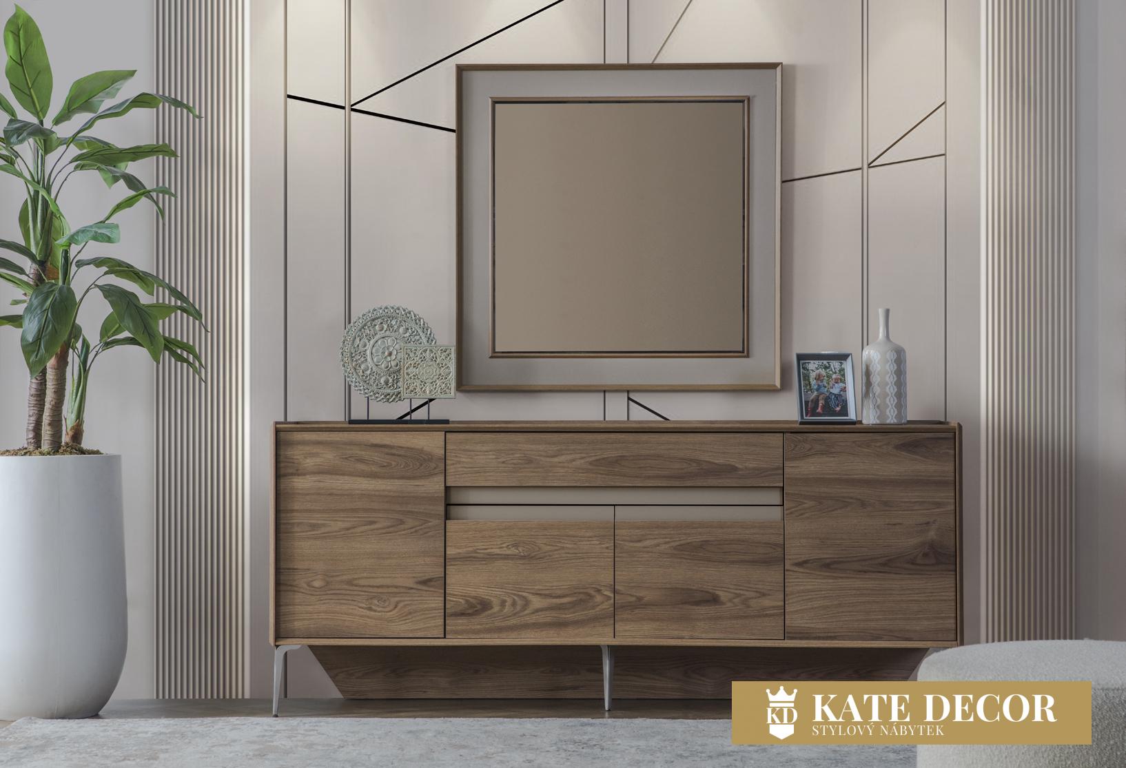 příborník: šířka 201 cm, výška 85 cm, hloubka 44 cm.