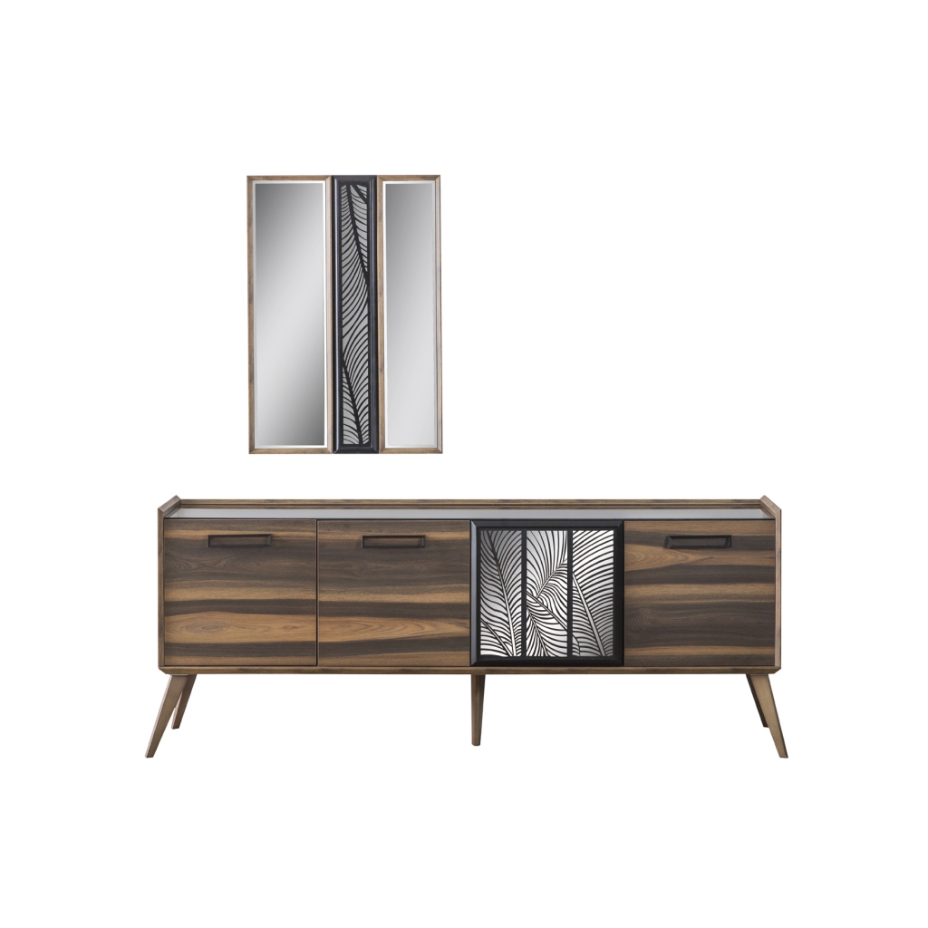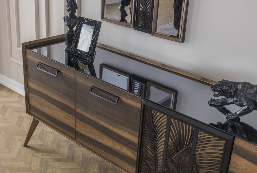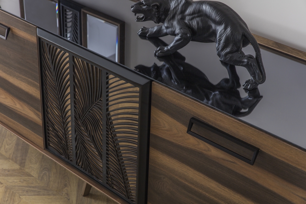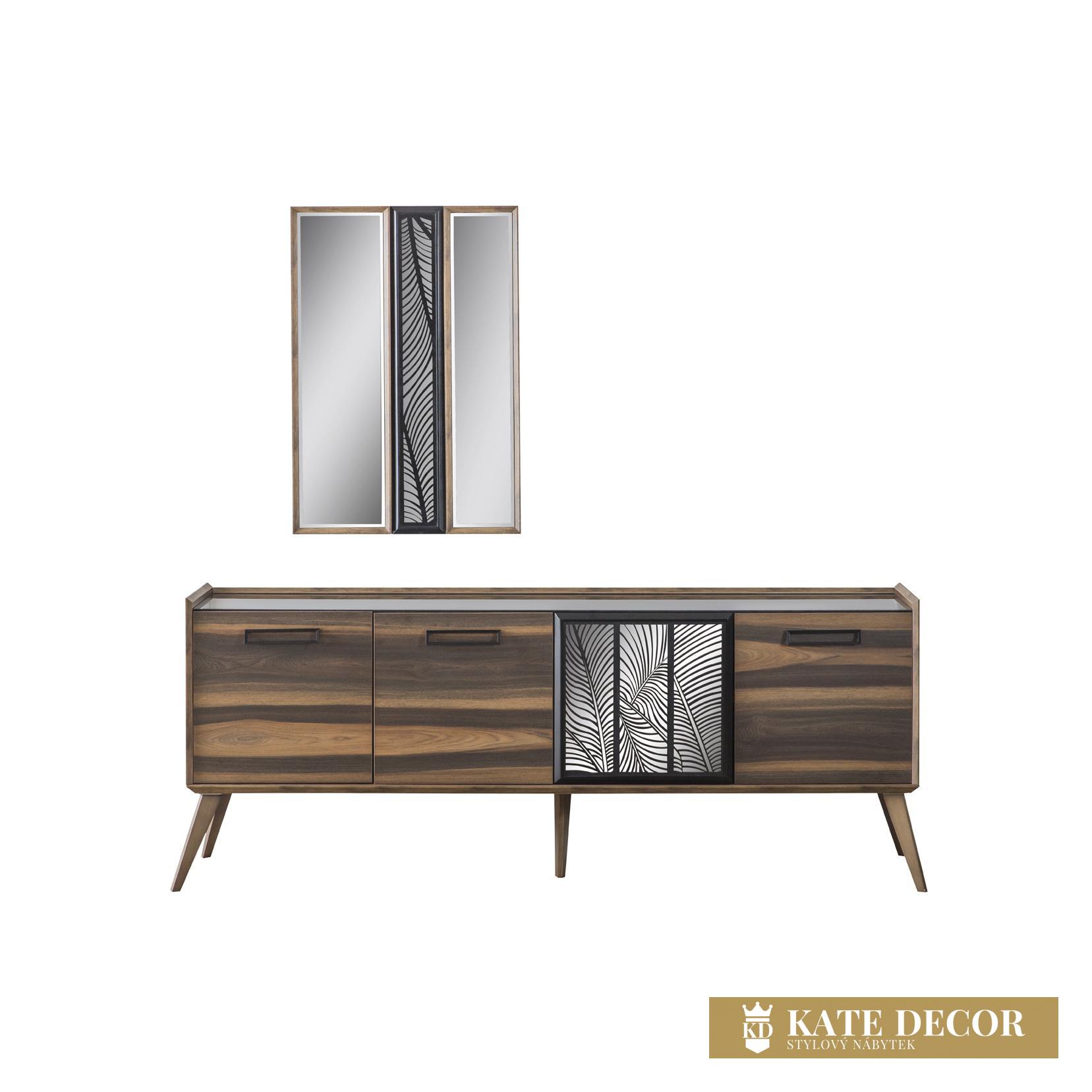 Model, který už jen svým vzhledem prozrazuje ruční práci. Detaily, nuance a všechny vlastnosti jsou důkazem této vytříbenosti. Použití laserových dekorů na zrcadlech a skříňkách a barevná harmonie zdobí výrobek a činí jej středem pozornosti. Povrchy cedrových dřevotřískových desek jsou opracovány pod úhlem 45 stupňů, což svědčí o jejich třídě, odolnosti a rafinovanosti. Příborník nejenže dodá místnosti styl a doplní soupravu, ale také poskytne dostatek úložného prostoru. Nábytek MOCA zaujme svou vyvážeností, detaily a propracovaností. Koresponduje v milém vjemu s odstínem dřeva v přírodním vzoru. Harmonie vzoru čela i zdobná aplikace vyvolává stabilizaci energií. Zde budete mít možnost pocítit pohodlí duše na úrovni a užít si tak každý den relaxační atmosféru.