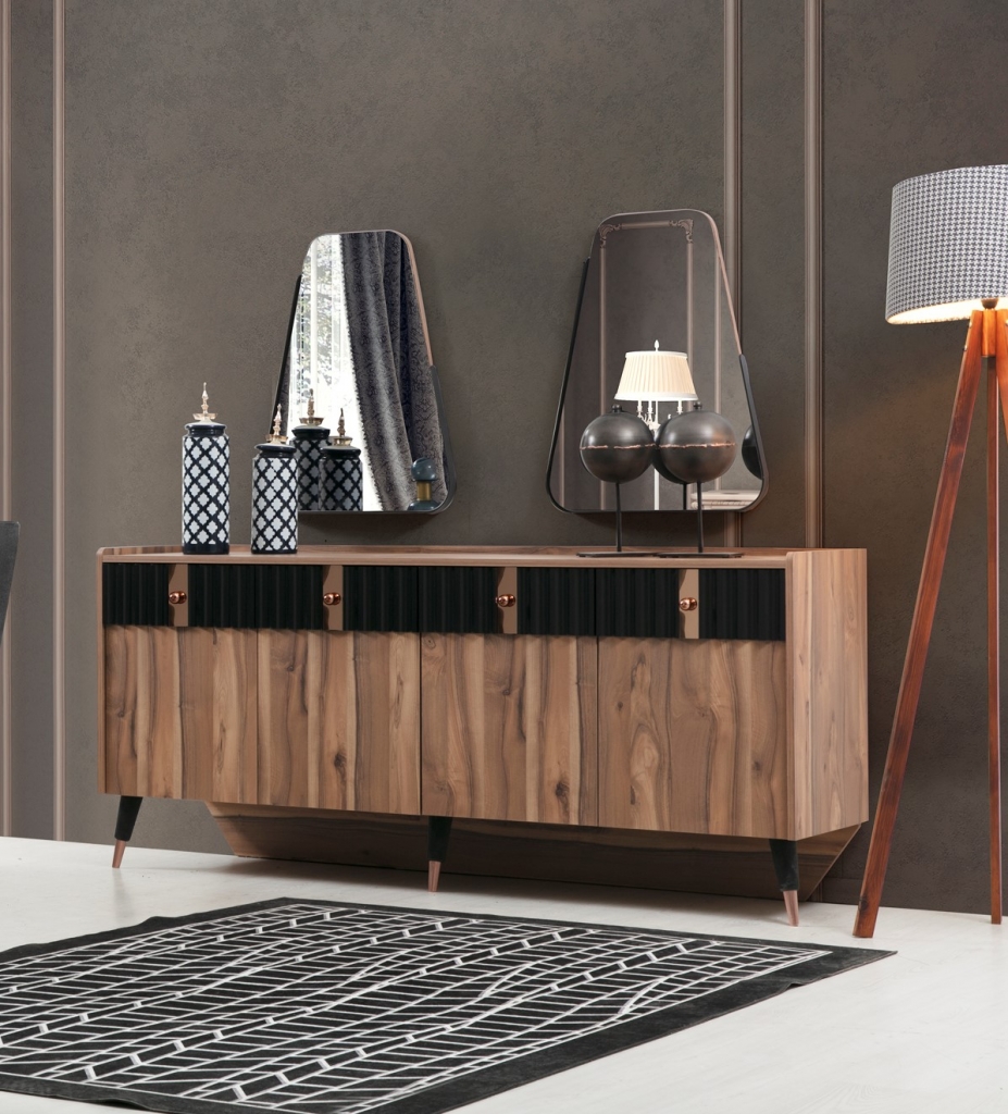 Příborník POLO je jedním z nejlepších a nejkrásnějších modelů, které jsme vytvořili. Výrobek, jemné detaily a barevná harmonie byly pečlivě promyšleny a navrženy tak, aby byly pastvou pro Vaše oči. Kromě vizuální dokonalosti vyniká příborník také svými funkčními vlastnostmi. Materiály použité při výrobě splňují všechny požadavky. Patří mezi nejkvalitnější a odolné proti deformaci. Společnost KATEDECOR Vám s potěšením představuje nábytek, který okouzluje svým komfortem a oslňuje svým vzhledem.Kombinace barev, přírodní dekor dřeva, antracitové zdobení, úchytky z růžového zlata, designové nohy a vynikající umělecko-řemeslné zpracování Vás přivedou do místnosti, jejíž atmosféra se nese v harmonické linii a navozuje pocit blízkosti přírody, vybraného vkusu a pohodlí.