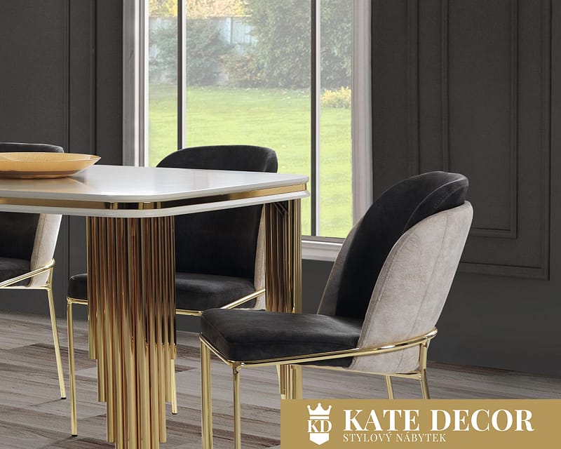 Příborník SEDEF je jedním z nejkrásnějších příkladů ruční výroby, který navždy zůstane ve vzpomínkách Vašich hostů i Vás samotných. Je vyroben z jemně lakovaného MDF panelu prvotřídní kvality, odolného proti poškrábání. Elegantní příborník a konzolové zrcadlo dodají Vašemu pokoji příjemný akustický a stylový vzhled. Funkčnost jídelny zvyšuje několik skříněk a dostatek úložného prostoru pro příborník. Výběr jídelny SEDEF vnese do Vašeho domova půvab a šarm. Četné zlaté aplikace, příjemný povrch, zaoblené hrany i reliéfní zdobení dotvářejí vizuální harmonii, jejíž dojem je umocňován zlatými nohami v neobvyklém propracování a designu. Nábytková sestava vytvoří ve Vašem pokoji harmonii i oslňují styl uchvacující Vaše oči.