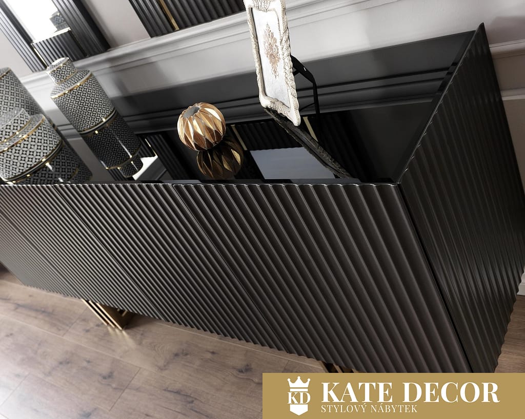 příborník: šířka 202 cm, výška 85 cm, hloubka 48 cm.
