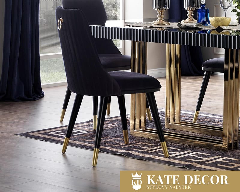 Jídelna SENFONI je připravena vnést do Vašeho domova styl a vytvořit nádhernou atmosféru. Svými detaily, jemnými prvky a půvabem okouzlí všechny Vaše hosty. Kromě vizuální exkluzivity se jídelna vyznačuje vysokou mírou pohodlí a odolnosti. Sada je působivá svým designem a je vyrobena z vysoce kvalitních materiálů a technik. Díky jedinečné barevné harmonii a pozlaceným kovovým nohám zazáří jídelní set SENFONI jako hvězda a dodá Vašemu pokoji estetický vzhled.