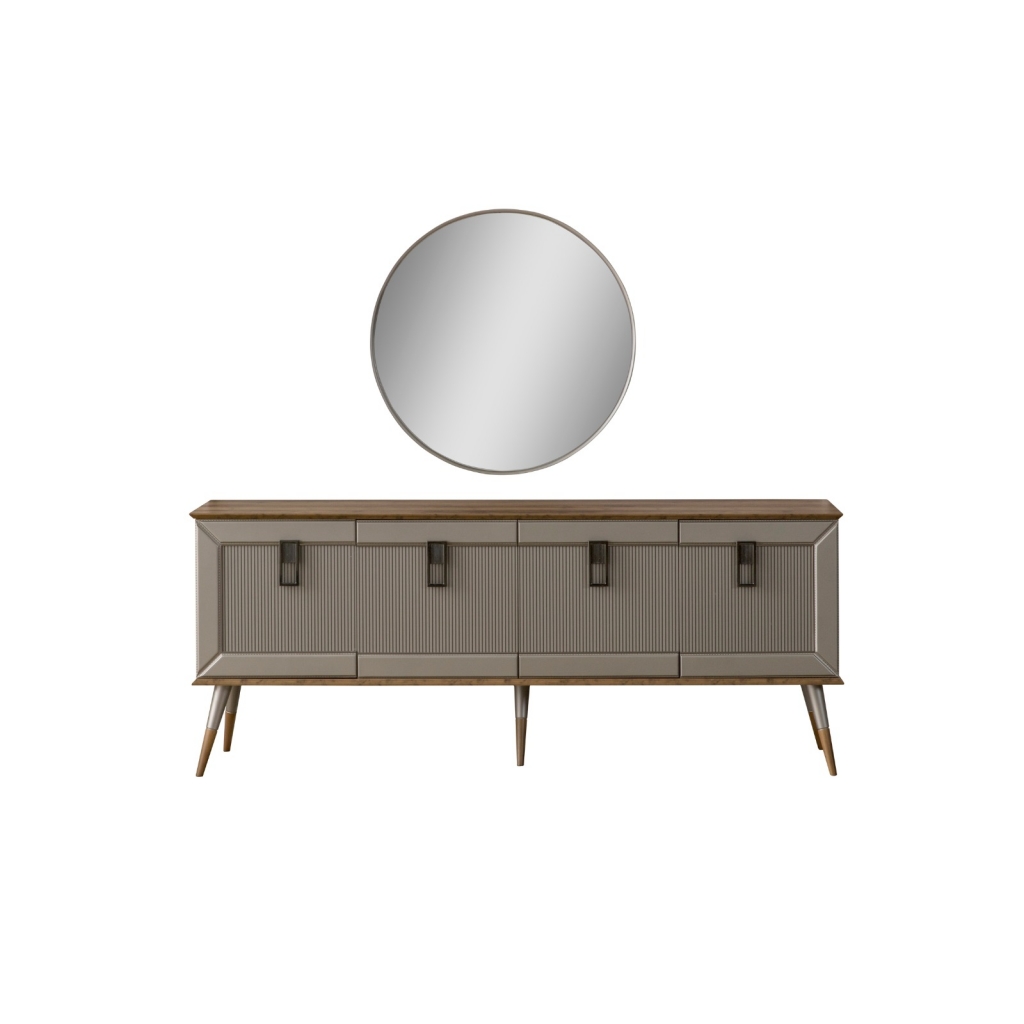 Chcete ve svém pokoji pocítit ducha klidu, pak je na čase seznámit se s SIDE, který je připraven poskytnout všechny Vaše požadované pocity a potřeby. Náš výrobek je vyráběn s velkou přesností, materiály jsou používány tak, aby splňovaly všechny výrobní požadavky. Povrchy dřevotřískových desek jsou opracovány pod úhlem 45 stupňů, což svědčí o jejich třídě, odolnosti a rafinovanosti. Designové detaily, dřevěné nohy s kovovým opláštění a barevná rafinovanost dotvářejí vzhled příborníku. Komoda SIDE v decentním designu je připravena vnést do Vašeho domova styl. Modernost podtrhují jemné detaily vertikálního zdobení, také kombinace s přírodním dekorem dřeva, kovové úchytky a pravidelně vyvážené zdobné linie. Tím vnáší do Vašeho domova styl, atmosféru a hlavně útulnost a pohodlí.