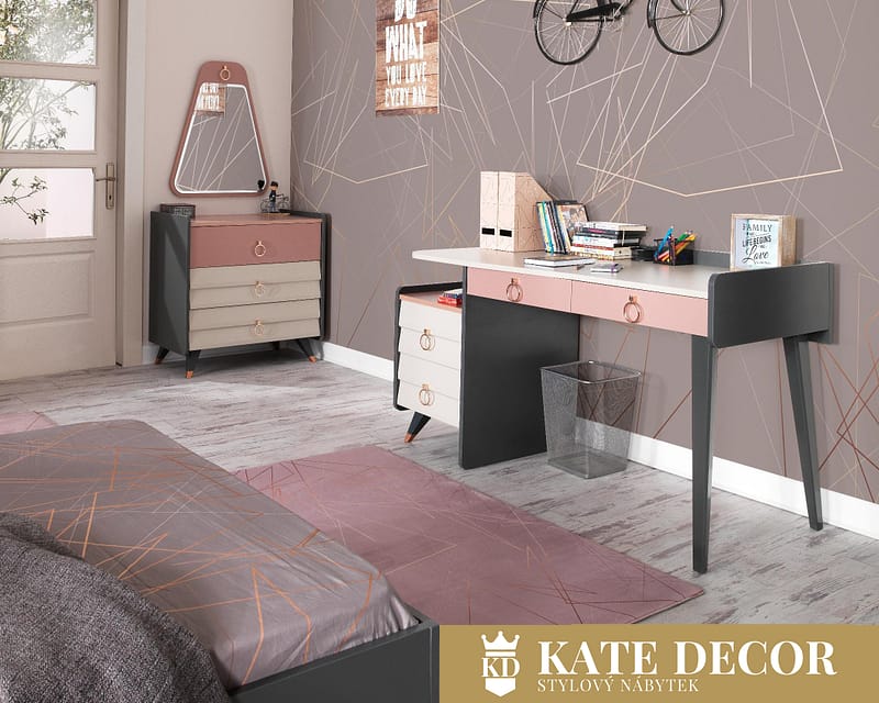 Představujeme Vám model, který má výjimečný vzhled, moderní styl a nenahraditelné pohodlí. Přítomnost všech těchto atributů formujepsací stůl VEGA a činí z ní jeden z nejpreferovanějších produktů. Barva, zrcadlové aplikace, kovové detaily a design čela postele zdůrazňují jeho exkluzivitu. Pokud je třeba pomůže Vám povzbudit soustředění k práci i učení a podněcuje energii i cílevědomost. Naše produkty jsou vyrobeny z nejkvalitnějších antialergických materiálů a tkanin s ohledem na zdraví Vašich hrdinů a mladých dam. Povzbuzuje tak kreativitu, utváří vkus a budoucí osobní styl.