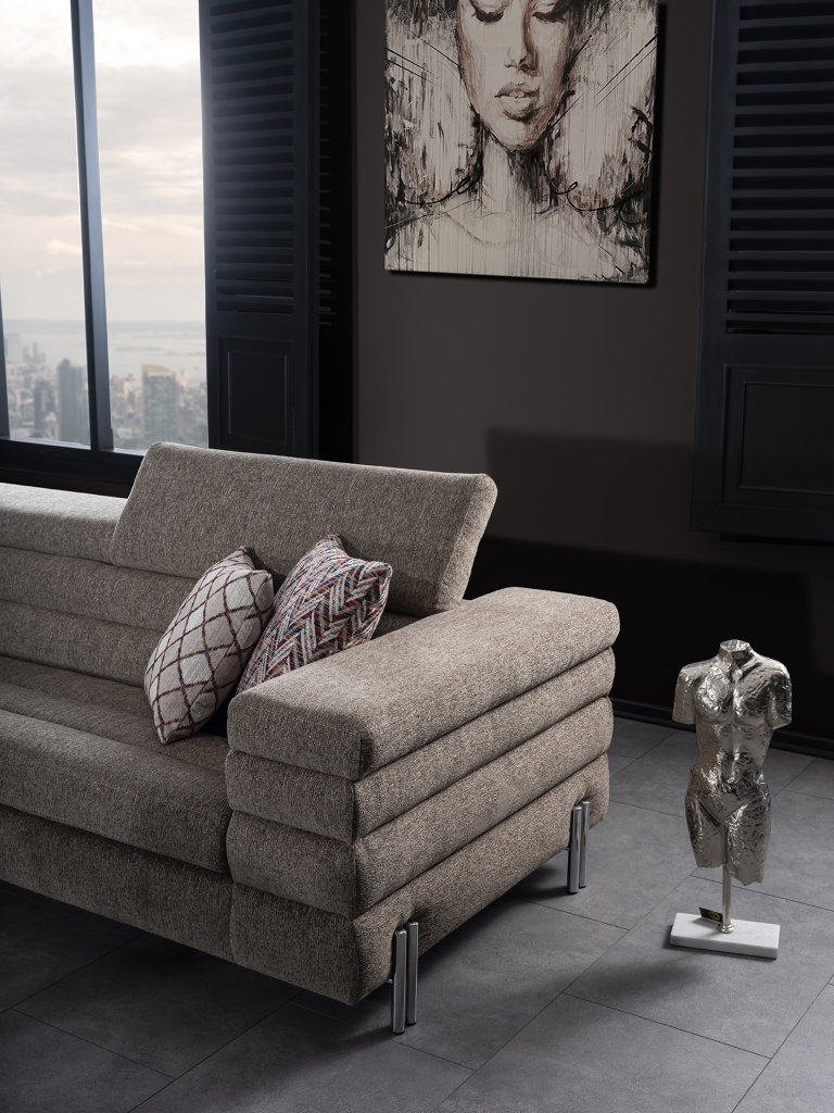 Rohová sedací souprava MARSALA je jedním z našich nejpřitažlivějších modelů s detaily vyrobenými na zakázku a jedinečnou barevnou kombinací. Jedná se o funkční a pohodlnou soupravu, která čeká na to, až se stane součástí Vašeho domova. Jeho funkčnost zvyšují mechanismy křesla, které si můžete nastavit podle vlastního pohodlí. Použité měkké houbičky prémiové hustoty poskytují mimořádné pohodlí, zatímco lněná tkanina s texturou odolnou proti skvrnám a vysoké kovové nohy z nerezové oceli Vám usnadní život tím, že zajistí snadné čištění a údržbu. Svým vzhledem, stylem a pohodlím je souprava MARSALA připravena vytvořit ve Vašem pokoji moderní a útulnou atmosféru.