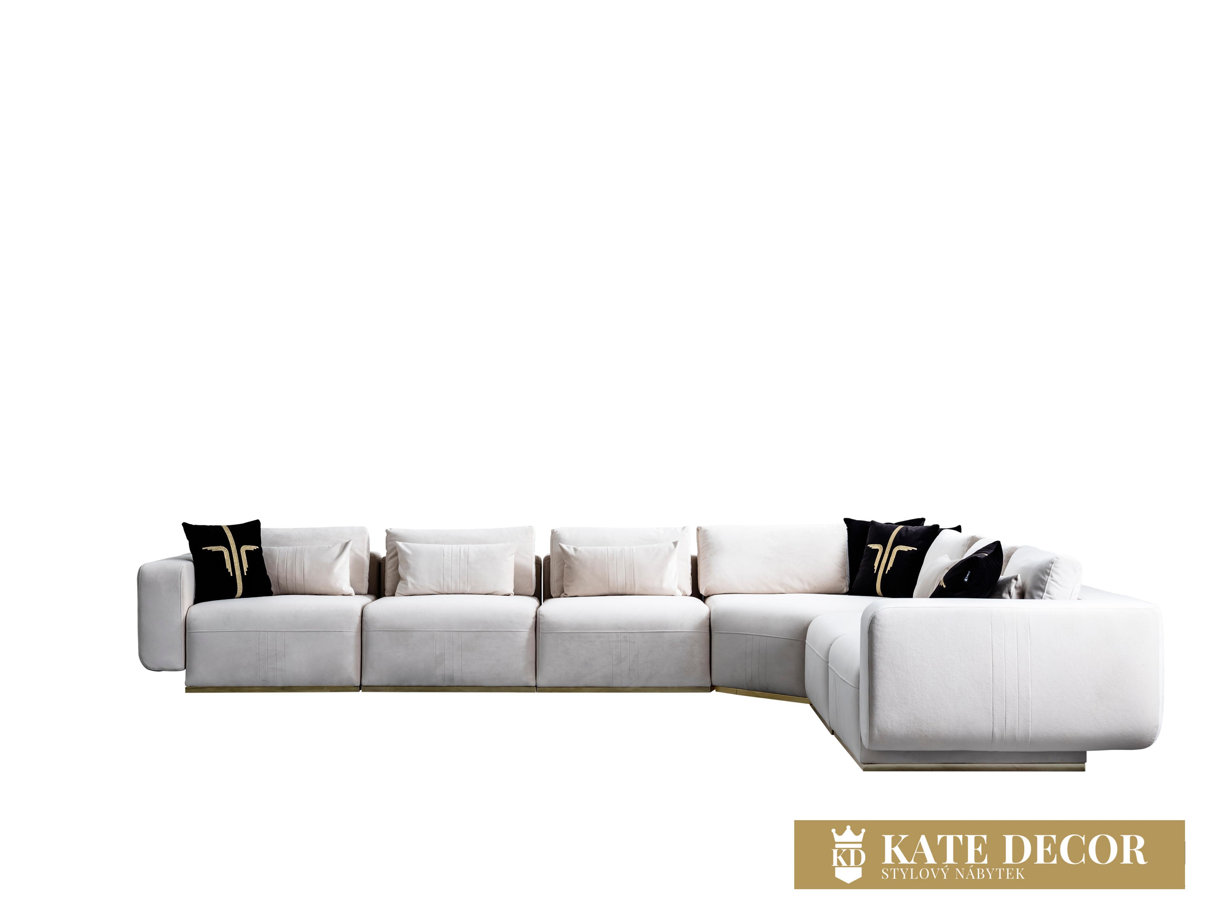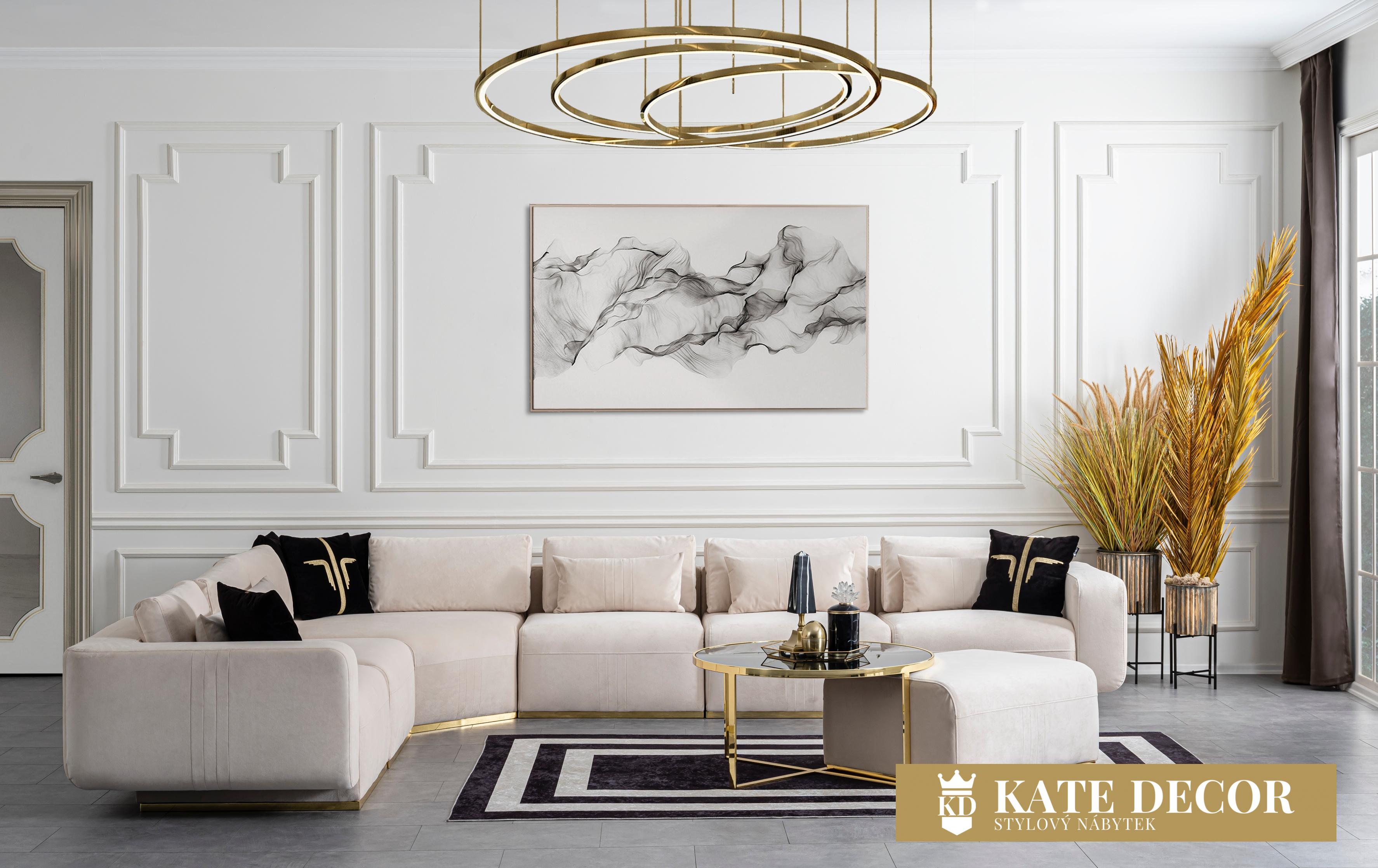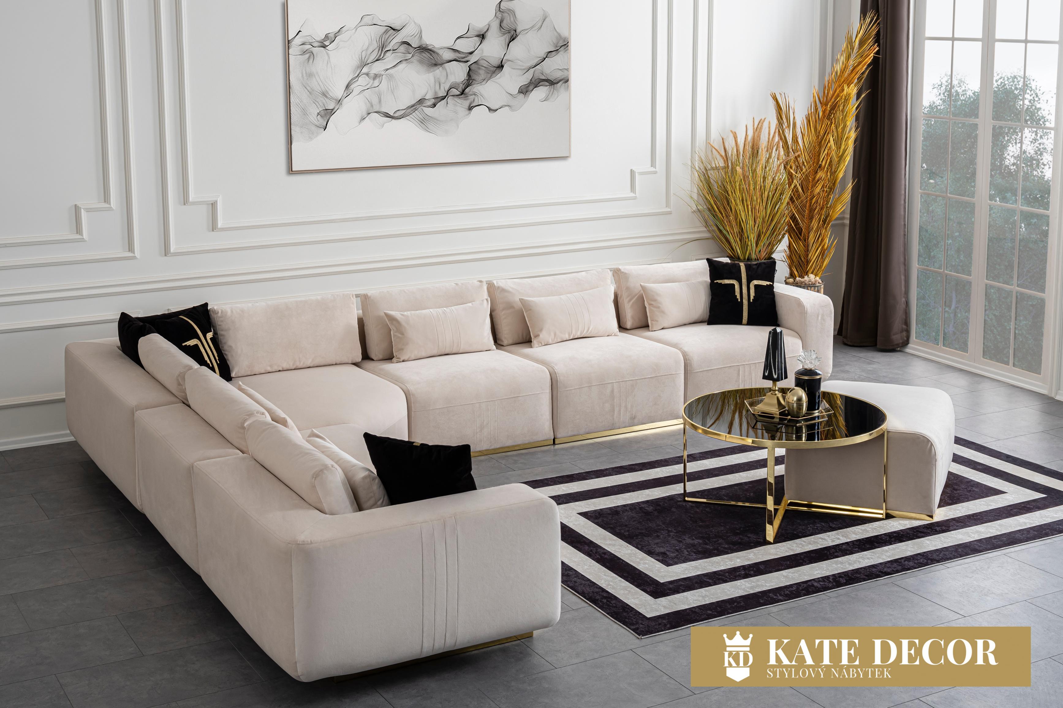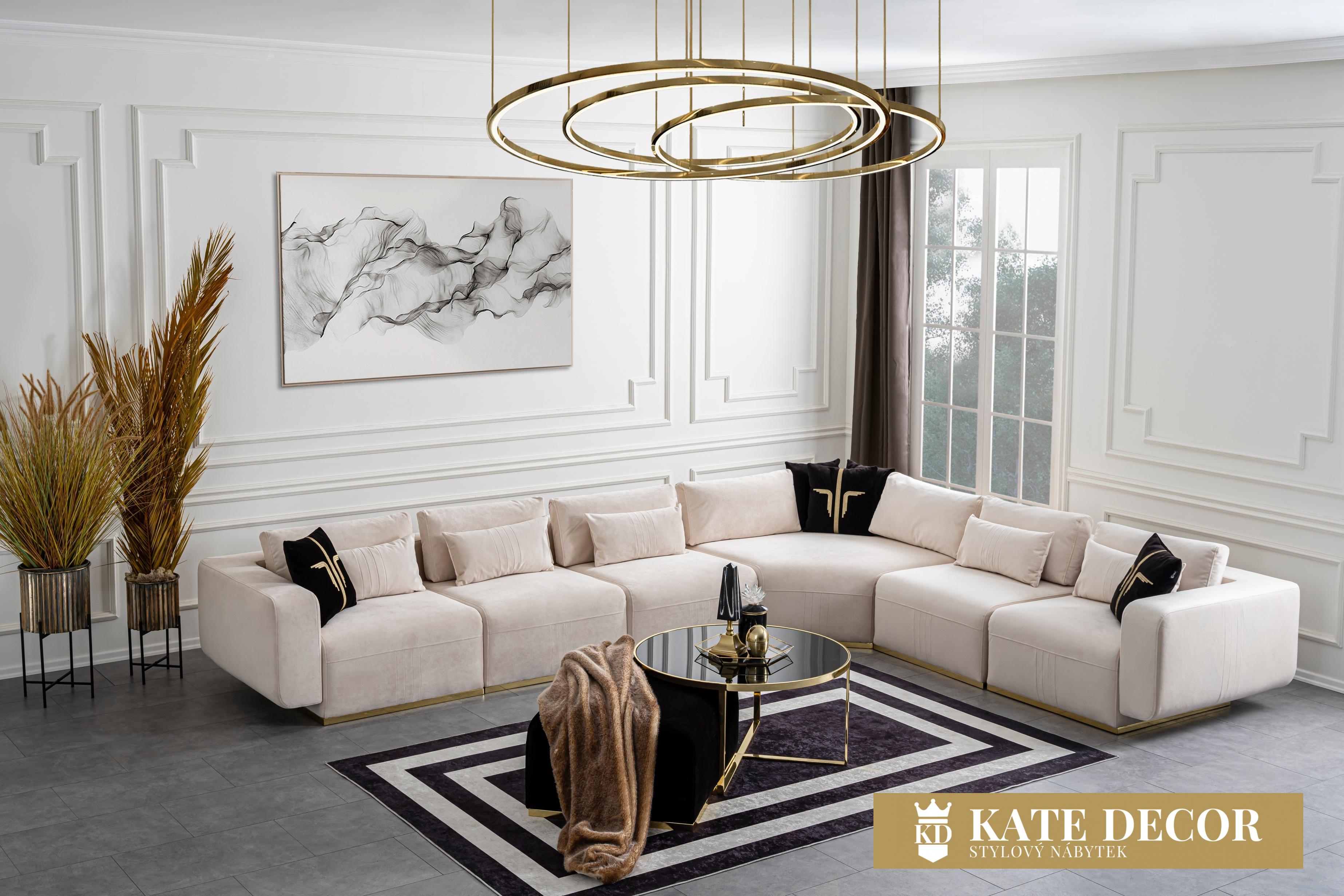 Rohová sedací souprava NEFI svou elegancí a šarmem dodá Vašemu pokoji jedinečný vzhled a umožní vám dosáhnout vysněného pohodlí a útulnosti. Při jeho výrobě byly použity moderní dekory, které spolu s barevnou harmonií a zlacenými kovovými detaily dodávají soupravě působivý vzhled a styl.