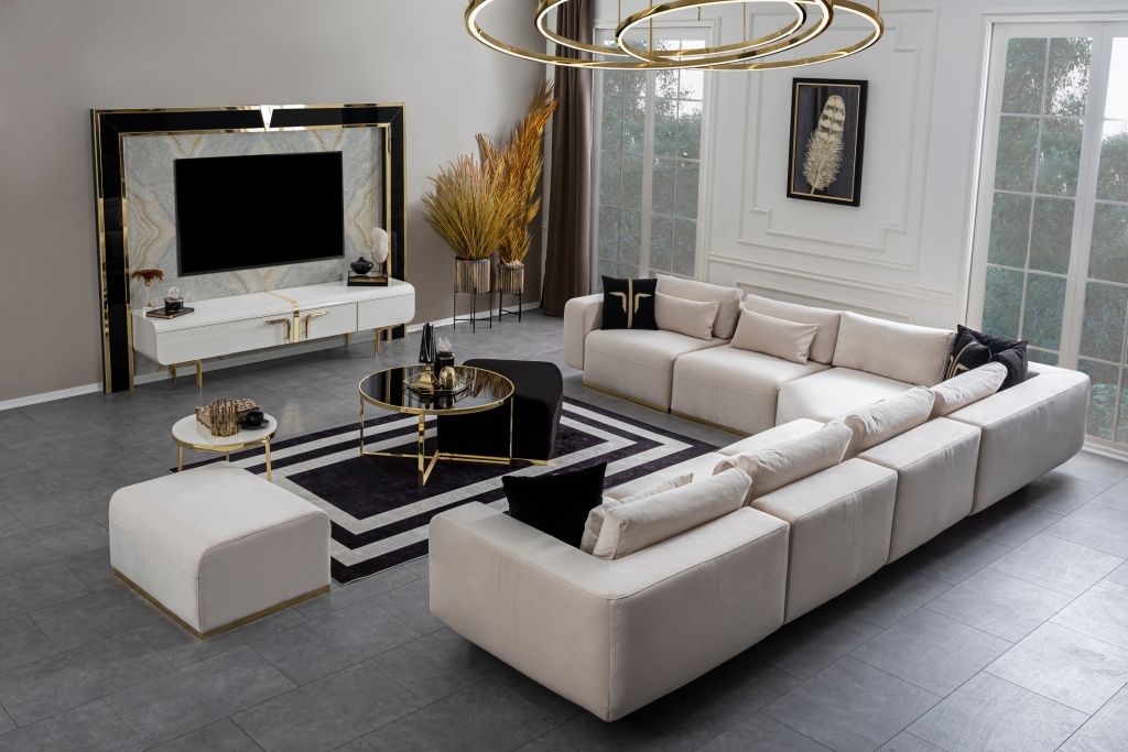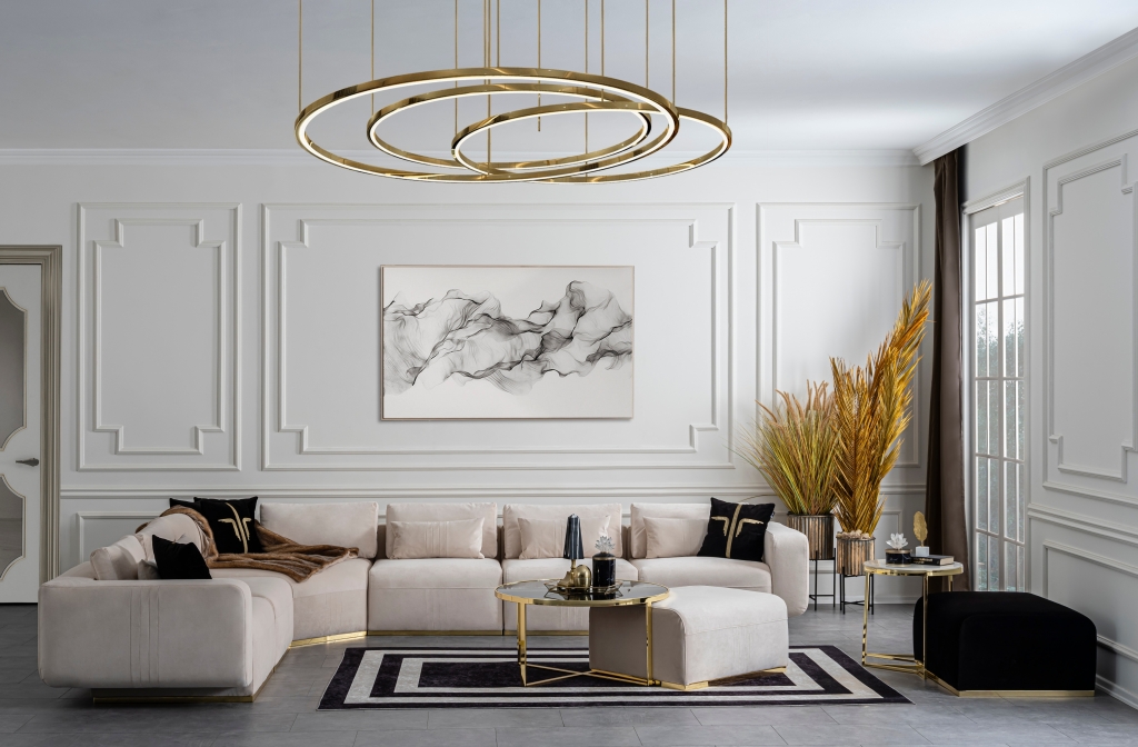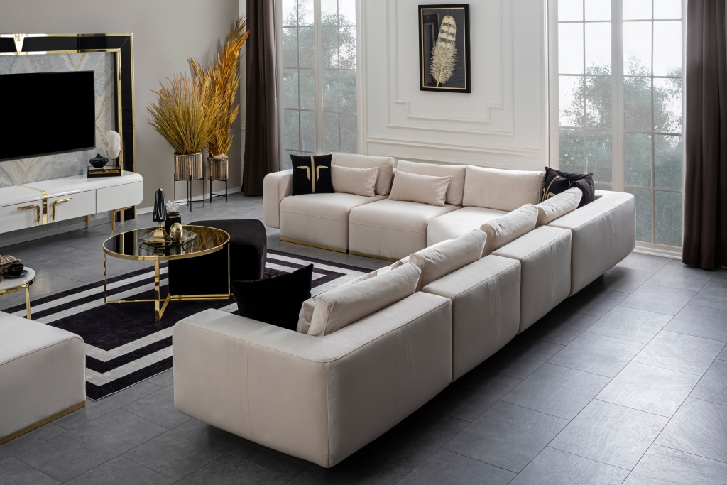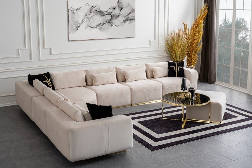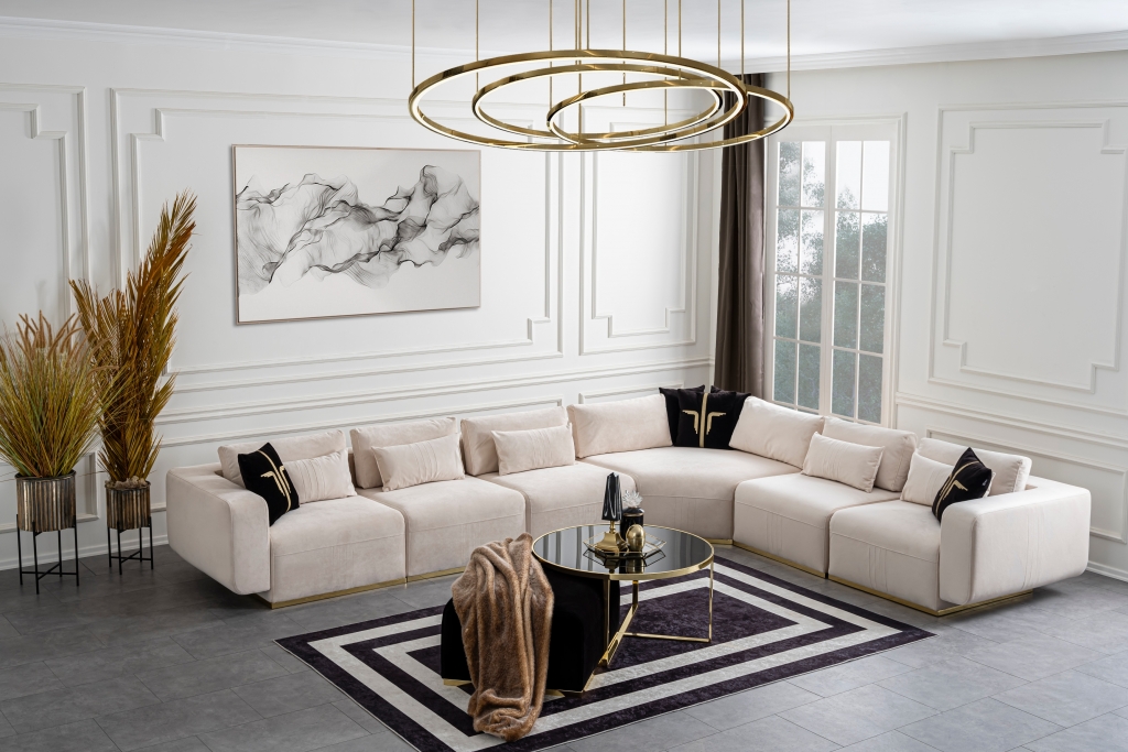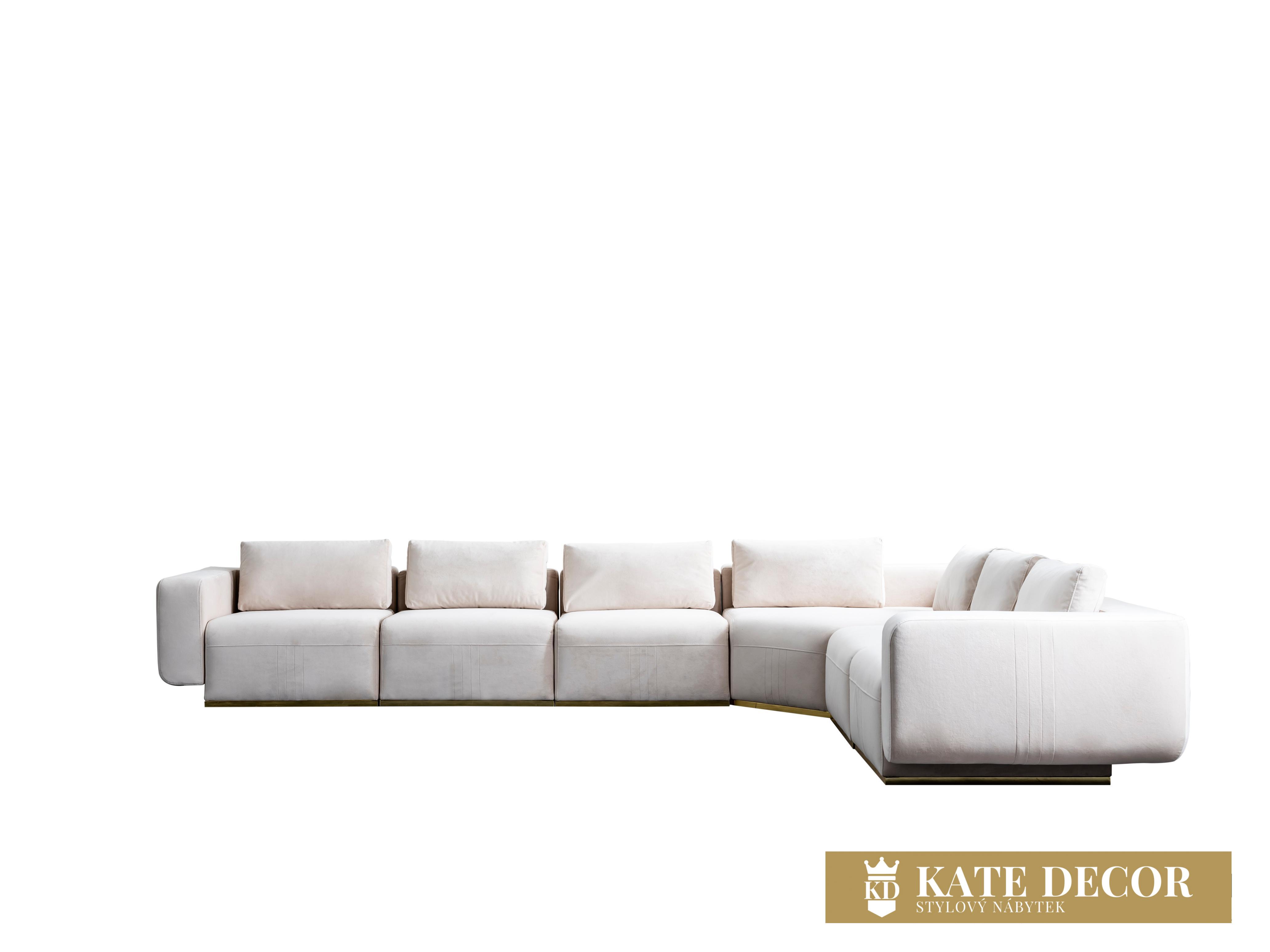 Rohová sedací souprava NEFI svou elegancí a šarmem dodá Vašemu pokoji jedinečný vzhled a umožní vám dosáhnout vysněného pohodlí a útulnosti. Při jeho výrobě byly použity moderní dekory, které spolu s barevnou harmonií a zlacenými kovovými detaily dodávají soupravě působivý vzhled a styl.