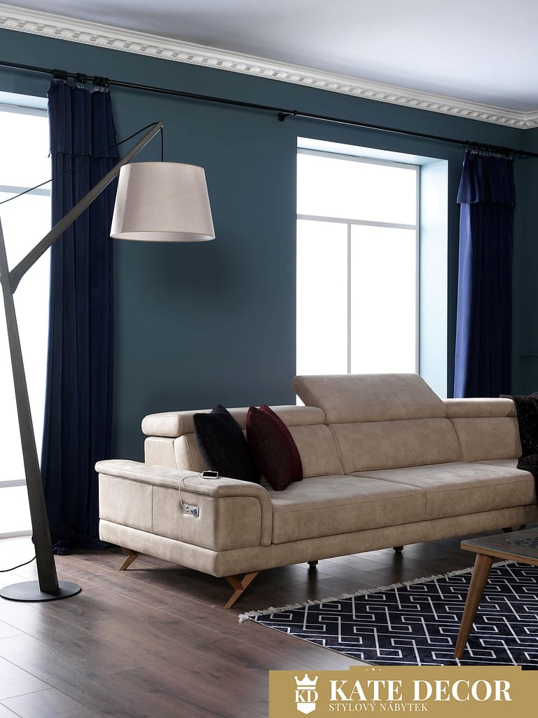 rozkládací třímístný modul s područkou: šířka 208 cm, výška 75 cm, hloubka 100 cm.- 66.046 Kč