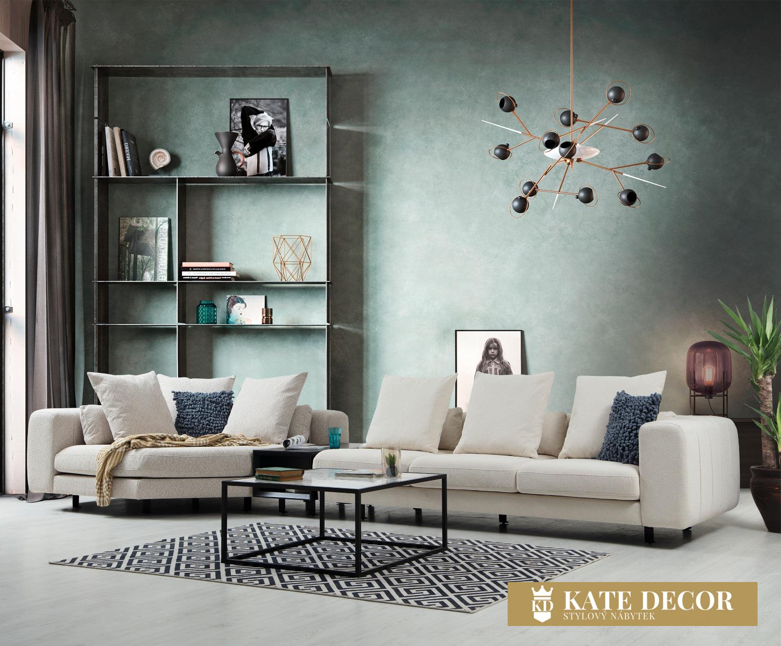 třímístný modul s područkou: šířka 245 cm, výška 66 cm, hloubka 100 cm. – 55.244 Kč