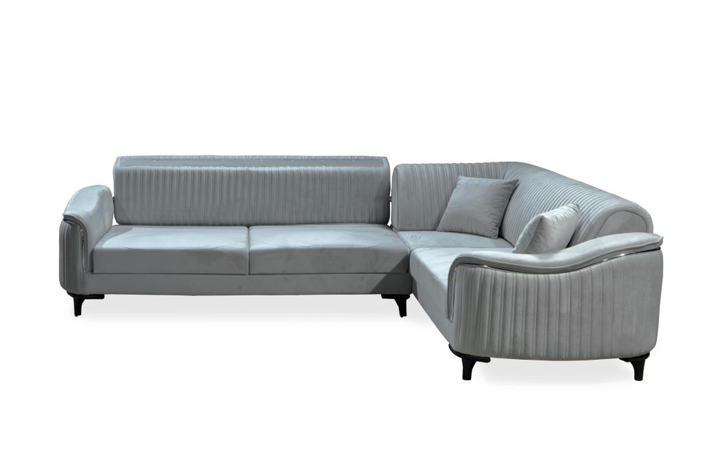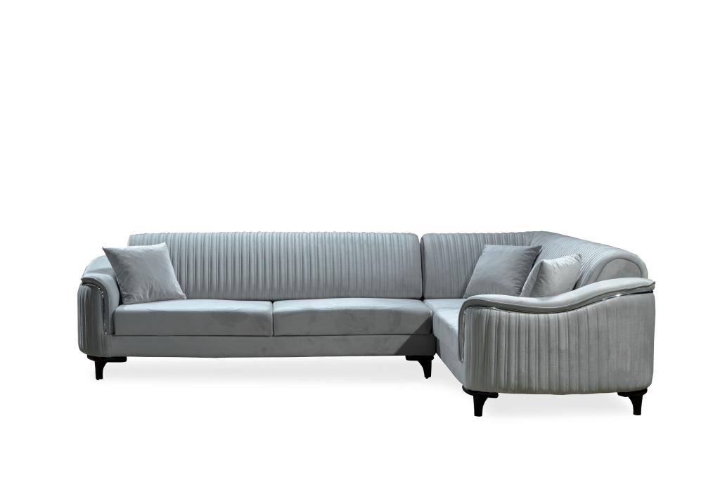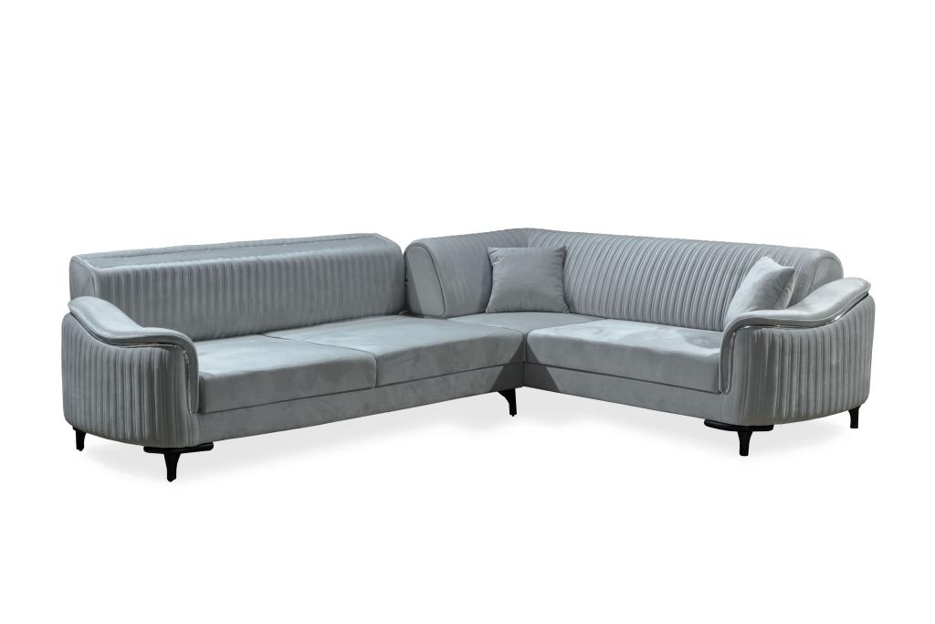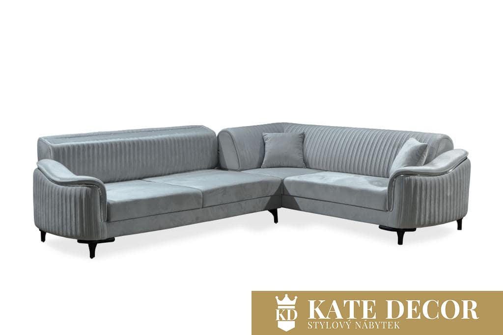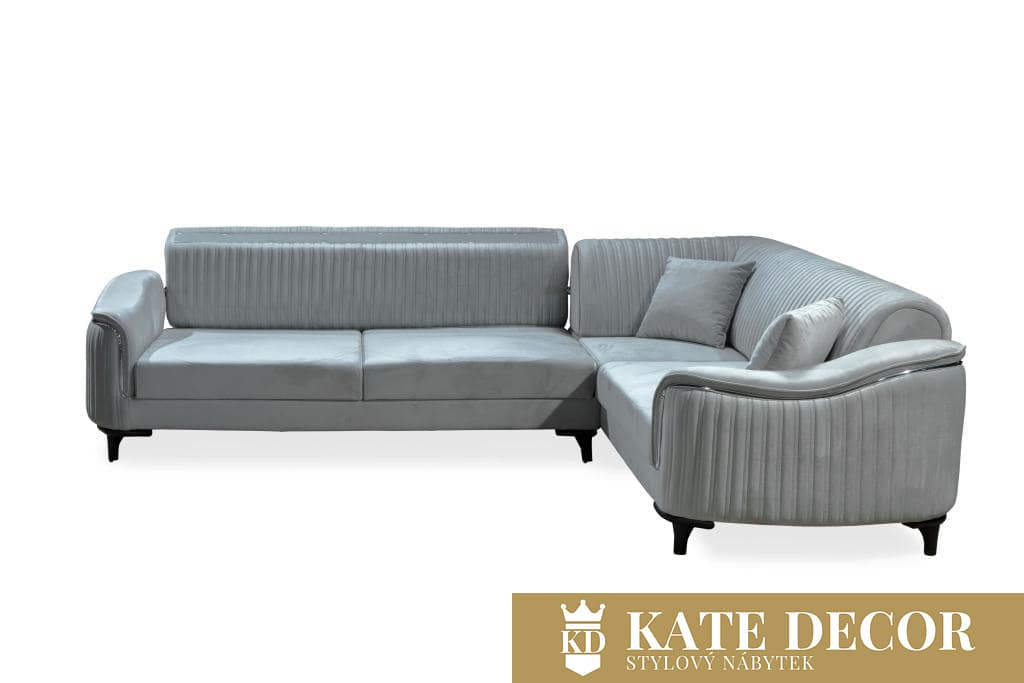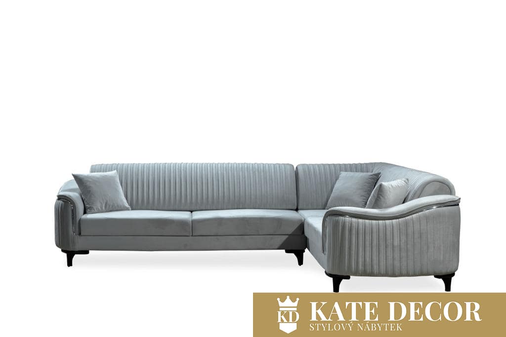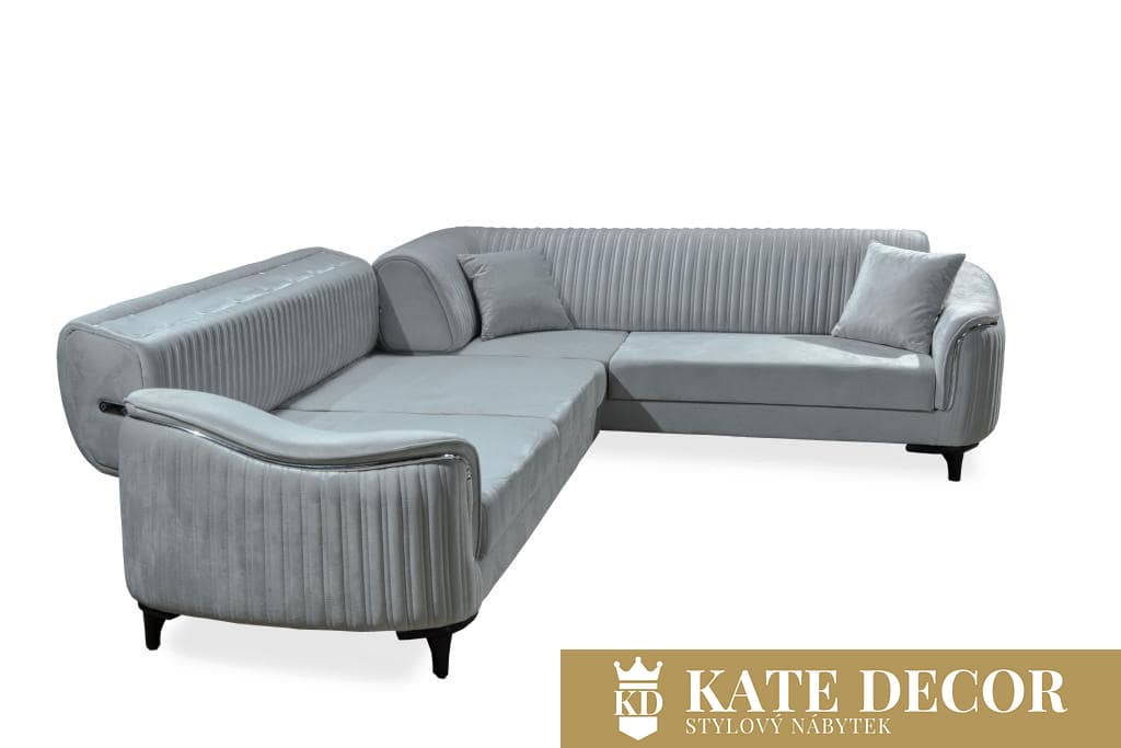 Rozměry: šířka 306 / 233 cm, výška 80 cm, hloubka 95 cm.