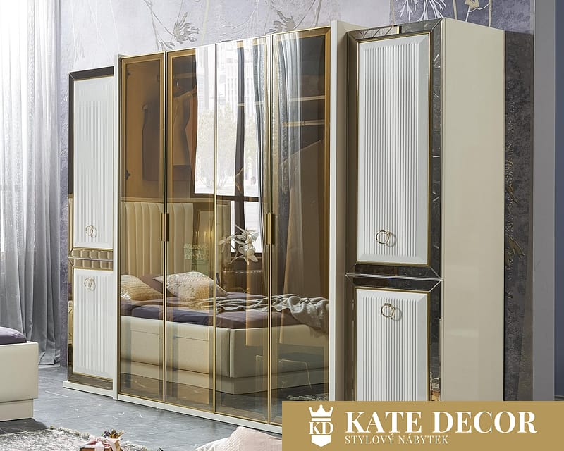 Šatní skříň CREA svým designem září jako hvězda a stává se nejoblíbenějším výrobkem s vysoce uklidňujícím účinkem. Speciálně navržené dekory, zrcadlové aplikace a bronzové kovové detaily vizuálně doplňují výrobek a podtrhují jeho jedinečný styl a půvab.