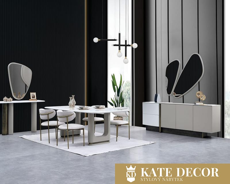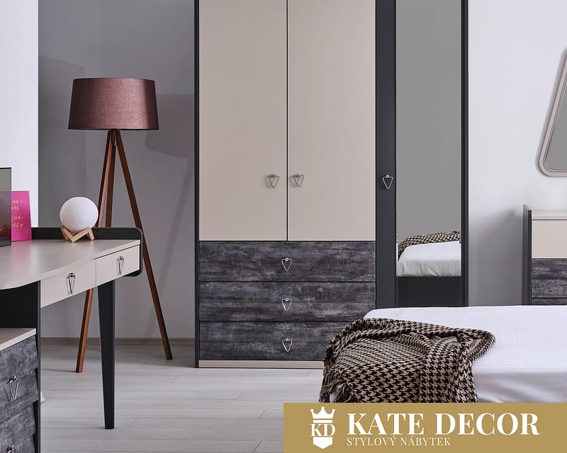 Ložnice DEFNE vyzdvihuje svůj styl a eleganci díky harmonii barev a designovým prvkům. Díky použitým látkám, zrcadlovým aplikacím se ocitnete v místnosti, jejíž atmosféra Vás přenese do moderního, uvolněného a pohodlného prostředí. Díky použitým materiálům MDF, dřevotřískovým deskám a kvalitním mechanismům Vám poskytne možnost užívat si tento pocit a pohodlí po mnoho let.