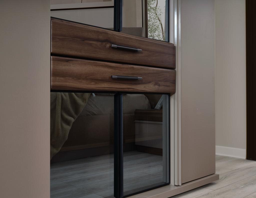Lákavá ložnicová sestava LUCIA je speciálně navržena tak, abyste se v ní cítili výjimečně a užívali si pohodlí, které si zasloužíte. Rafinované doteky, zrcadlové aplikace a barevná harmonie sice vytvářejí moderní atmosféru, ale zároveň ukazují Vaši třídu a designový vkus. Ložnice je jedním z nejlepších příkladů kategorie luxusu a stylu.