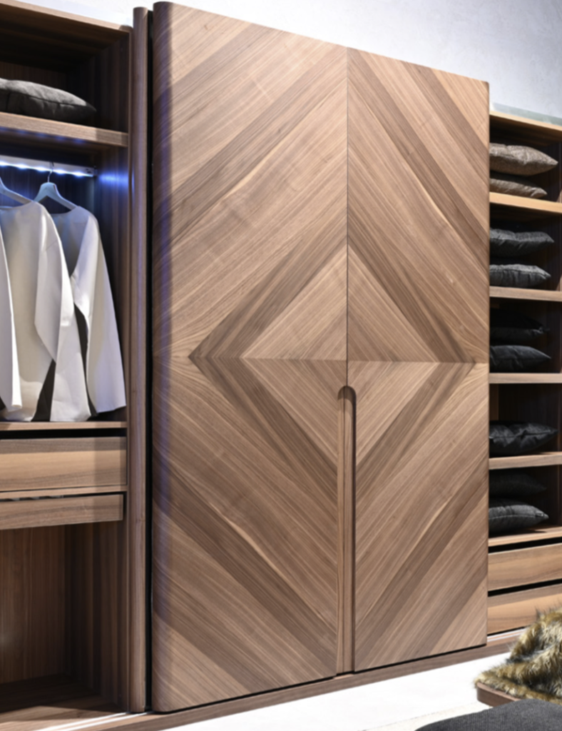 – šatní skříň s několika zásuvkami, věšáky a policemi;
