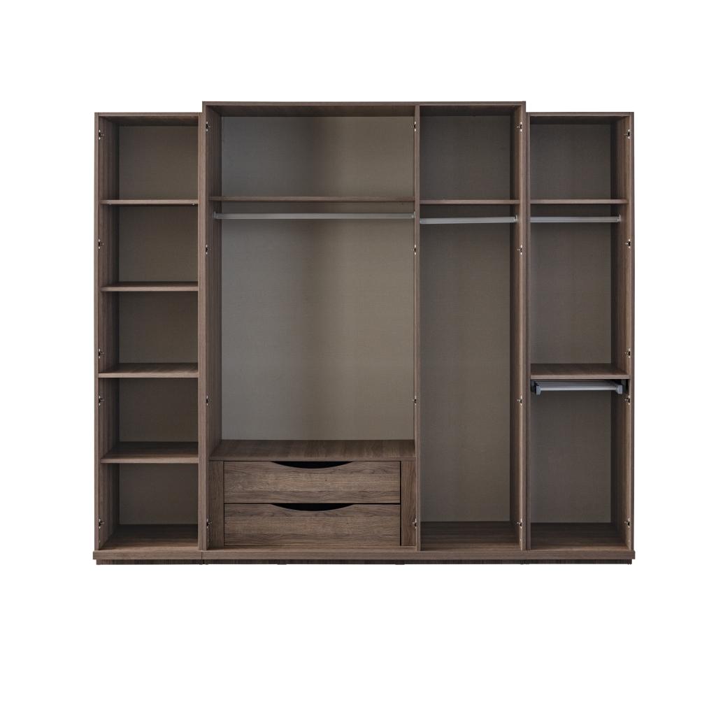 Šatní skříň ROLEX chce být součástí Vašeho domova díky svému uklidňujícímu účinku. Její vzhled obohacují zrcadlové aplikace, dřevěné detaily a čistý design čela a postele. Každý prvek byl navržen s velkou precizností. Funkce skříně poskytují dostatek vnitřního úložného prostoru, hladké zavírání dveří skříně, zásuvek a mechanismus základny zajišťují snadné používání. Dřevotřískové desky, dřevěná konstrukce a kovové doplňky zajišťují dlouhou životnost soupravy. Ložnice byla navržena s velkou pečlivostí, aby Vám poskytla styl, pohodlí a praktičnost.