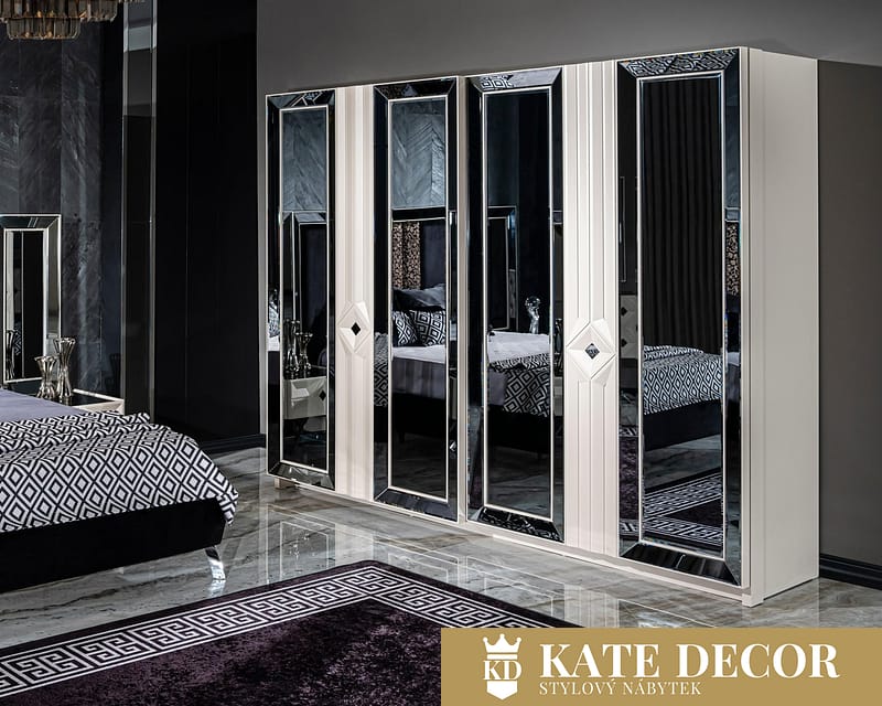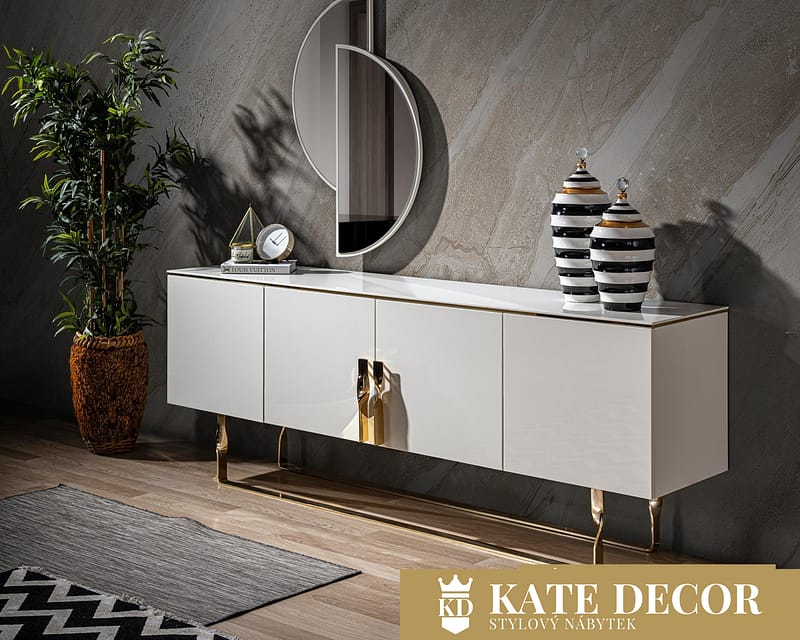 Šatní skříň ZEN GOLD dodá Vašemu domovu jedinečnost prémiové třídy a vybraného vkusu. Designové akcenty zlata v stylu úchytek zdůrazňují ladnost, která se snoubí s velkolepostí. Kvalita materiálů a spojení vytváří celkový luxusní dojem. Díky svému jedinečnému designu vnese šatní skříň ZEN GOLD do Vašeho pokoje nejen styl a eleganci, ale díky zrcadlům a tvrzenému sklu vytvoří i jinou atmosféru. Neuvěřitelný lesk bílé barvy, zlacený kov a speciálně navržené detaily obohacují vzhled výrobku a dodávají Vašemu pokoji okouzlující atmosféru. Funkčnost šatní skříně zvyšují 4 skryté zásuvky, 4 závěsné části a několik polic.