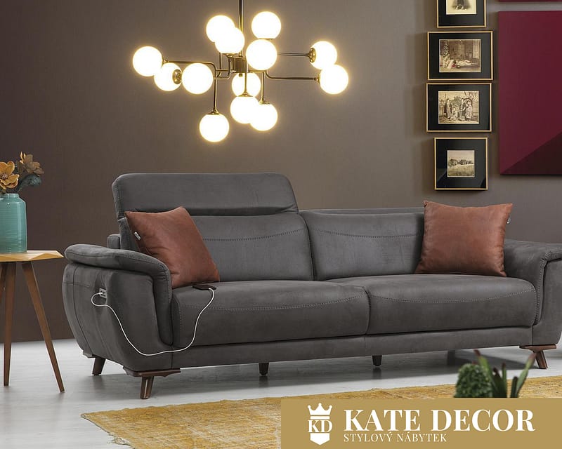 třímístná pohovka: šířka 230 cm, výška 75 cm, hloubka 98 cm (hloubka sedu: 62 cm)