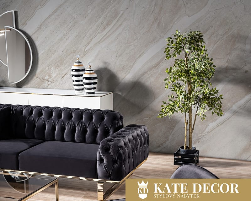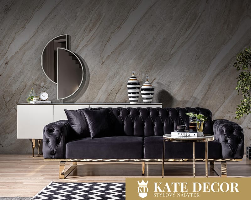 Obývací sestava AYZA s úžasnou barevnou kombinací dodá Vašemu pokoji okouzlující atmosféru. Souprava je vymyšlena ze snadno čistitelné a skvrnám odolné tkaniny, metody capitone a měkkých křesel, a tak kromě jedinečného pohodlí dodá Vašemu pokoji také styl. Křesla z našeho sortimentu s vysoce kvalitními mechanismy lze proměnit v pohodlná lůžka. S otočným křeslem je dosaženo vizuální integrity konceptu. Použitá speciální látka, zlatý kov a designové detaily, vysoké moderní nohy a nenahraditelné pohodlí obohacují vzhled soupravy a vytvářejí lákavý vzhled a styl Vašeho pokoje.
