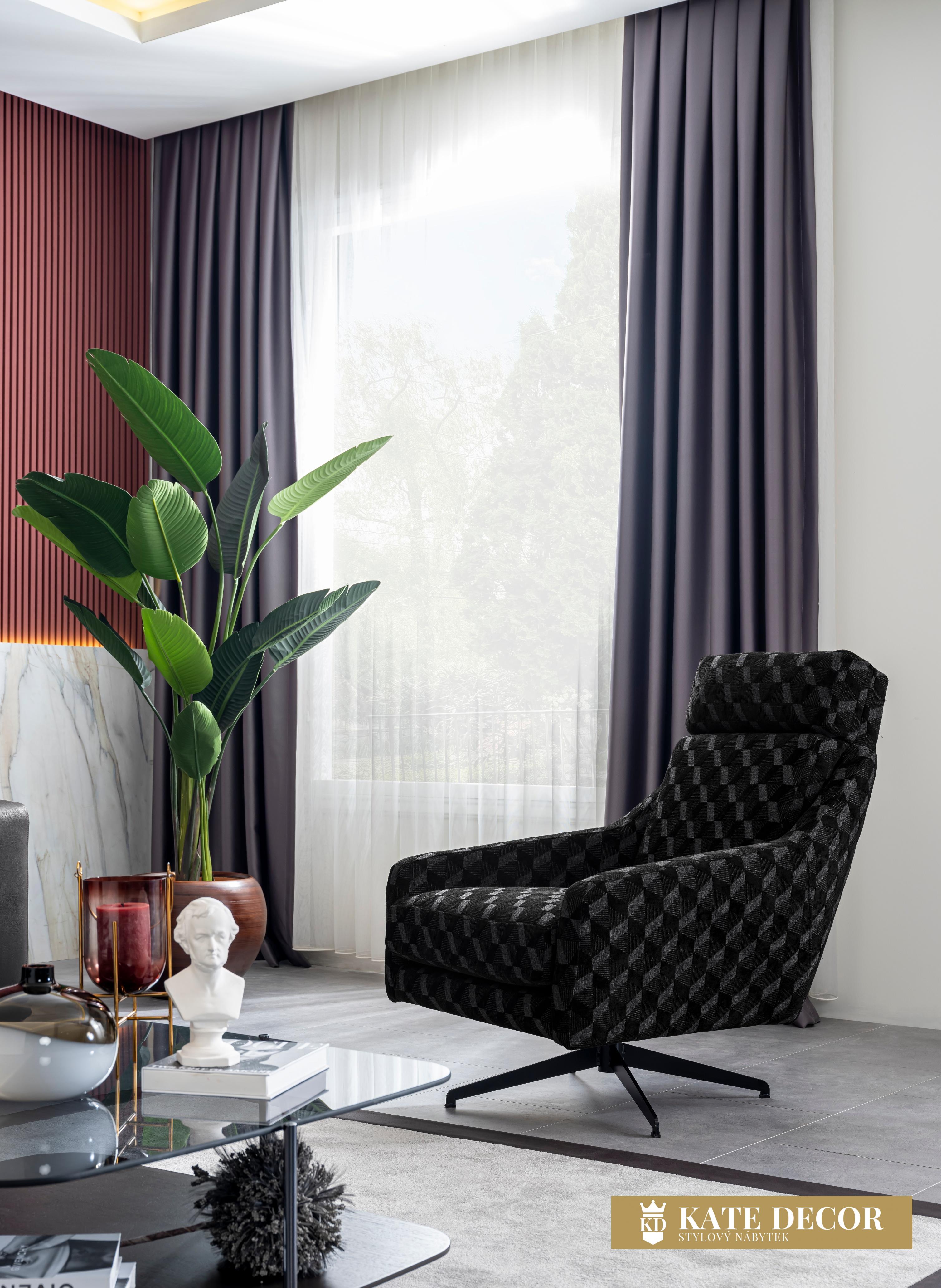 křeslo: šířka 75 cm, výška 97 cm, hloubka 95 cm.