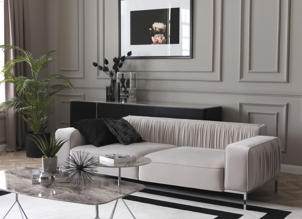 Obývací sestava STELLA má moderní design, který klade důraz na funkčnost a pohodlí. Byla vyrobena tak, aby dodal obytným prostorám elegantní dynamiku. Pohovka STELLA, která má pohodlný a klidný vzhled, pro Vás bude tou nejvhodnější a nejlepší volbou. Díky svému světlému a autentickému stylu dodá Vašemu pokoji příjemnou a relaxační atmosféru.