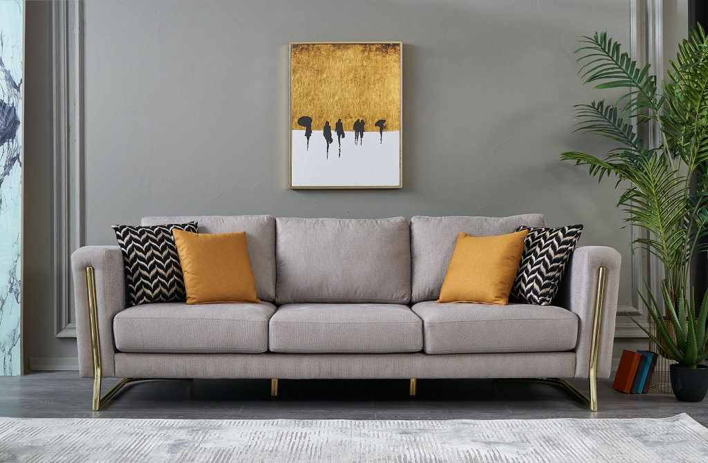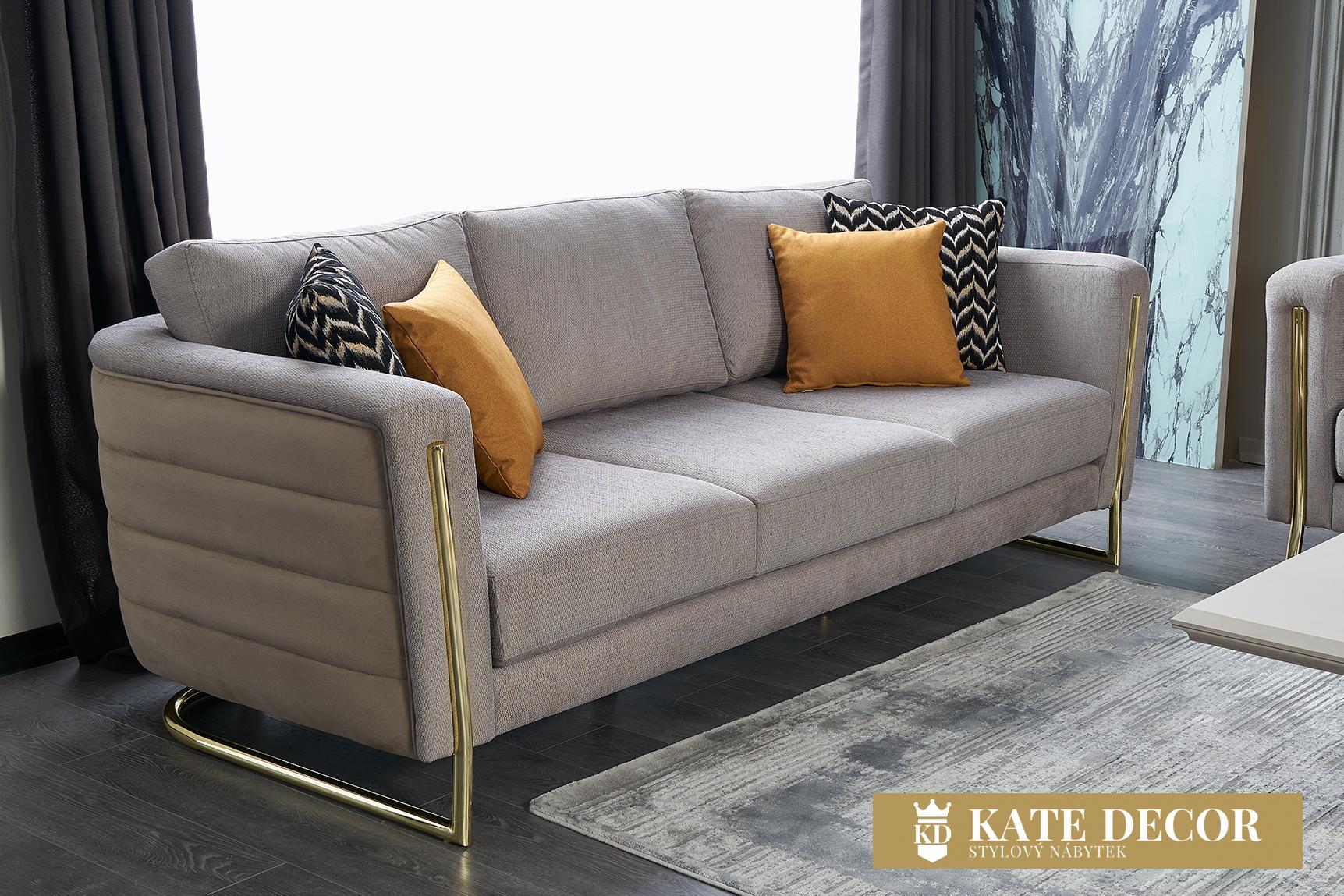 třímístná pohovka: šířka 255 cm, výška 75 cm, hloubka 100 cm.