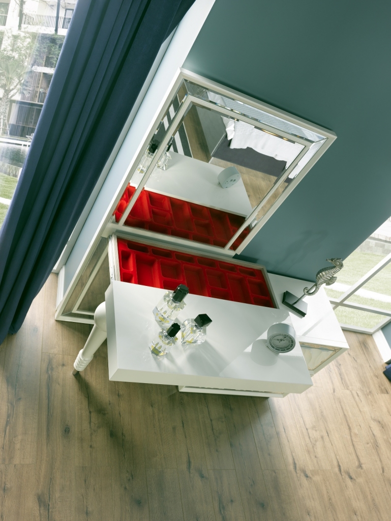 Kolekce DARZEN je jedním z nejkrásnějších dokladů ruční práce, která zůstane ve vzpomínkách Vašich hostů i Vašich. Vykroužené balustrádové nohy vyzařují romantiku zámeckých zahrad. Toaletní stolek DARZEN díky designovým detailům, reflexnímu sklu a použití stříbrných detailů vytvoří úžasnou atmosféru a moderní vzhled Vašeho pokoje. Ložnice DARZEN usnadní Vám život tím, že nabízí dostatek úložného prostoru díky šatní skříni, nočním stolkům, komodě a spodnímu lůžku. Pro dosažení vizuální celistvosti konceptu jsou při konstrukci soupravy použity kvalitní lakované 18mm MDF materiály, dřevotřískové obklady a měkká strukturovaná tkanina. Skříň má moderní vzhled díky reflexnímu sklu. Moderně navržená ložnice DARZEN je připravena stát se součástí Vašeho domova díky svému bezkonkurenčnímu pohodlí a stylu.