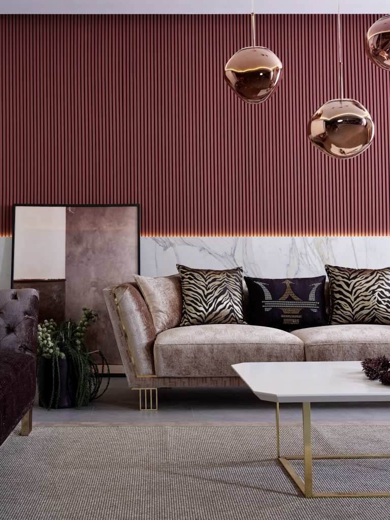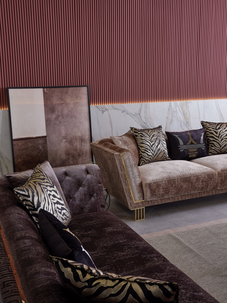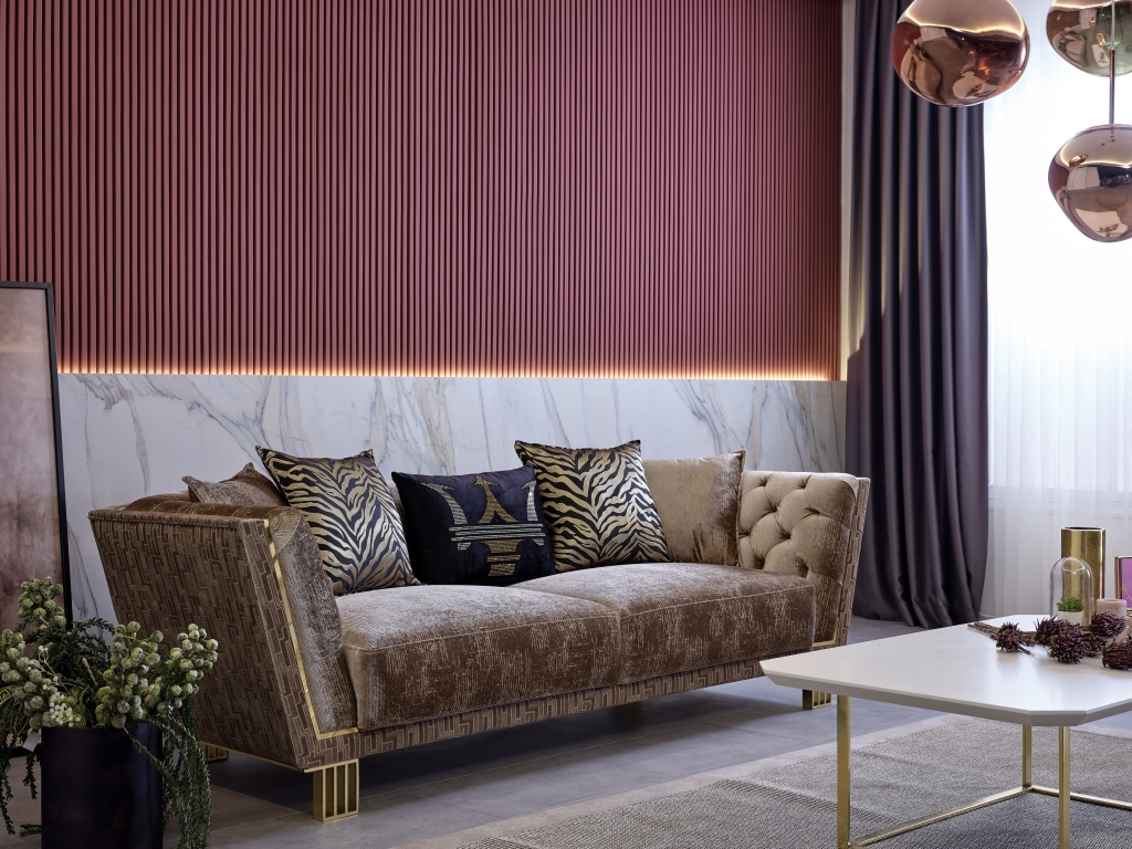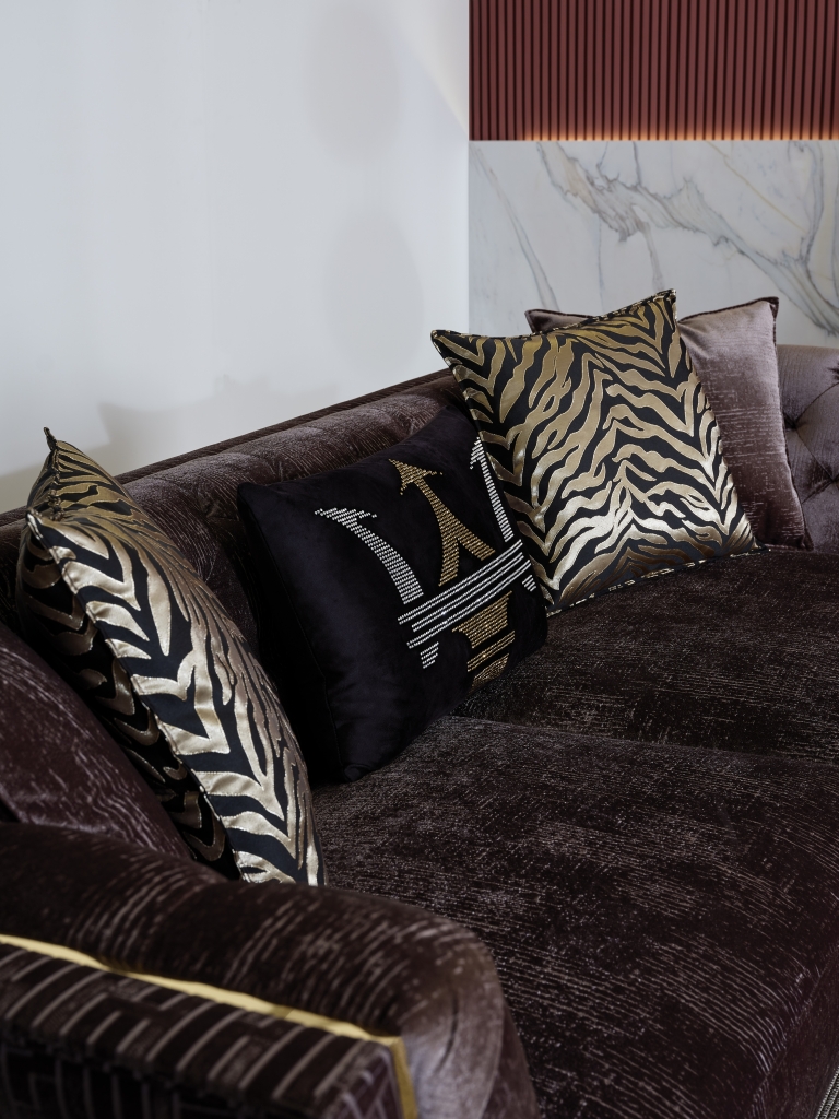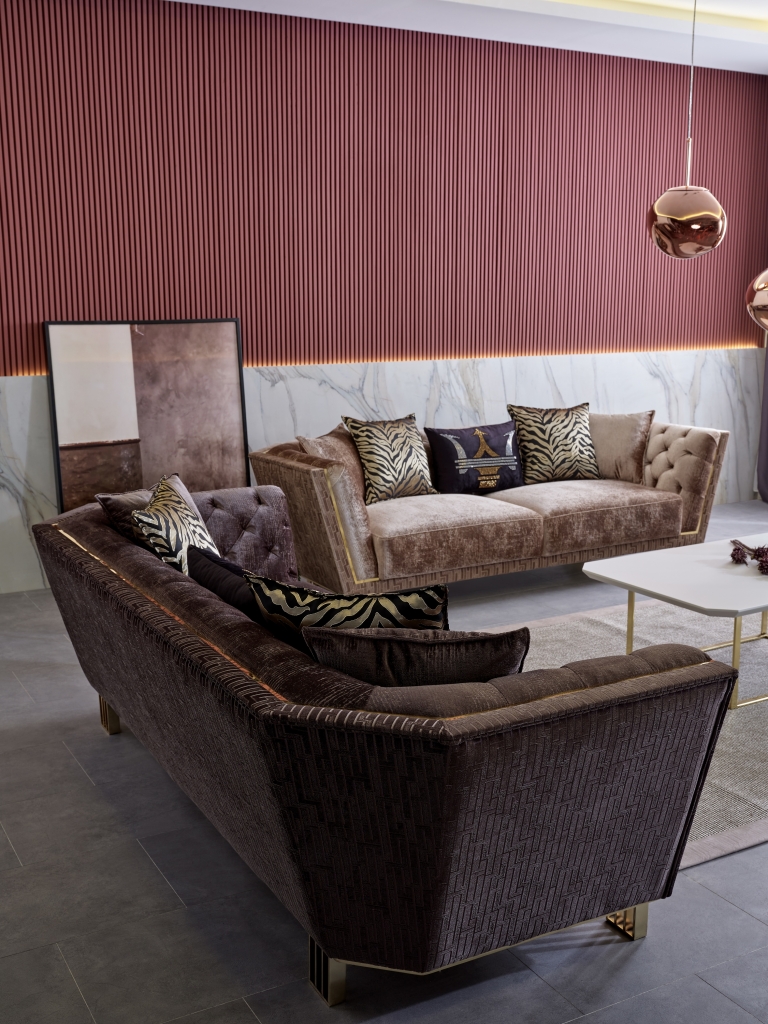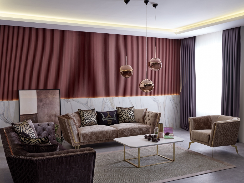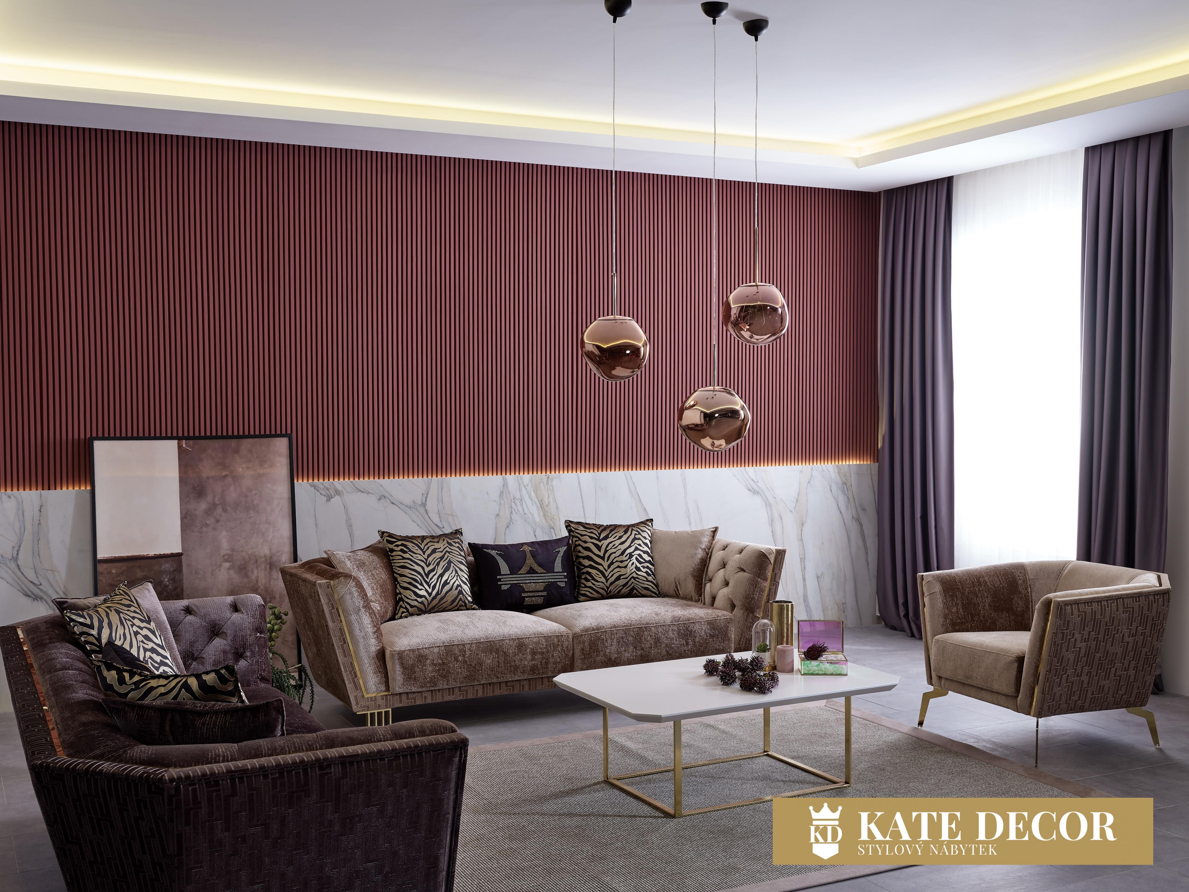 Obývací sestava MASERATTI je díky svému pohodlí a stylu jednou z našich nejoblíbenějších sestav. Díky svému okouzlujícímu vzhledu je připraven dodat Vašemu pokoji originalitu. Zvolená tkanina a měkká výplň byly speciálně vybrány tak, abyste cítili maximální pohodlí a užívali si její jedinečnost. Obývací pokoj přitahuje pozornost svými hřejivými tóny a zve k pohodlnému odpočinku.