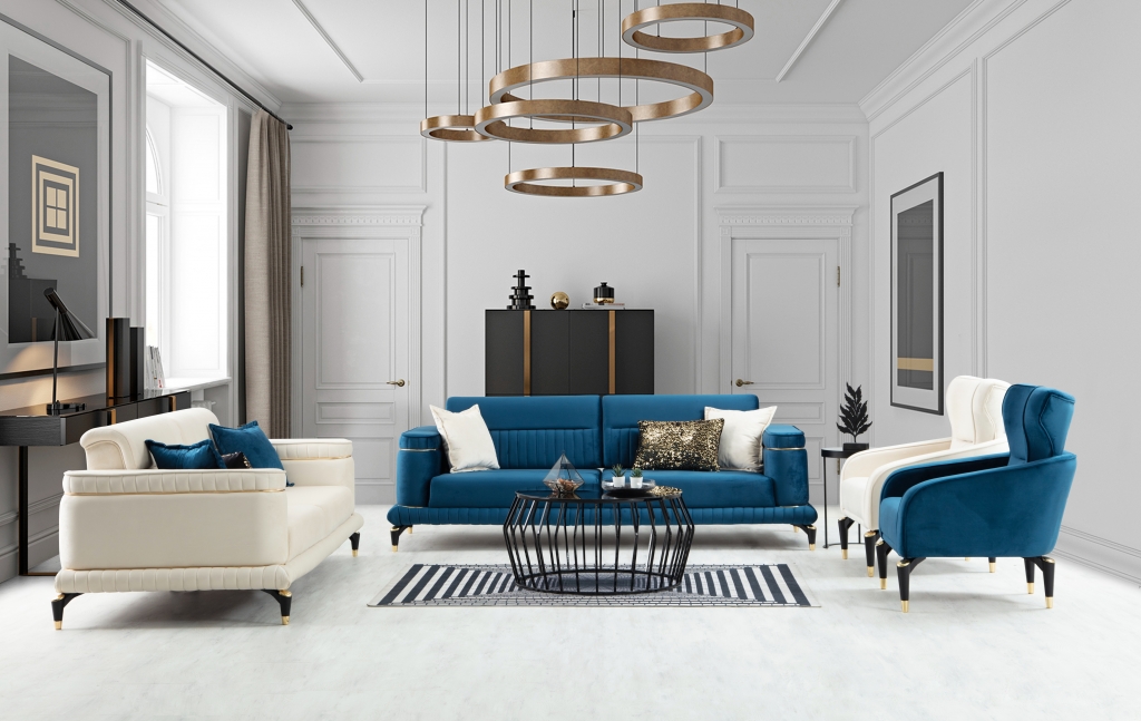 Obývací sestava SAFIR se svou elegancí a šarmem dodá Vašemu pokoji jedinečný vzhled a umožní Vám dosáhnout vysněného pohodlí a útulnosti. V konstrukci jsou použity moderní dekory, které spolu s barevnou harmonií a kovovými detaily dodávají soupravě působivý vzhled a styl. Díky své odolnosti získané díky kvalitním materiálům a použitým látkám je připraven zaujmout své místo ve Vašem pokoji po mnoho let.